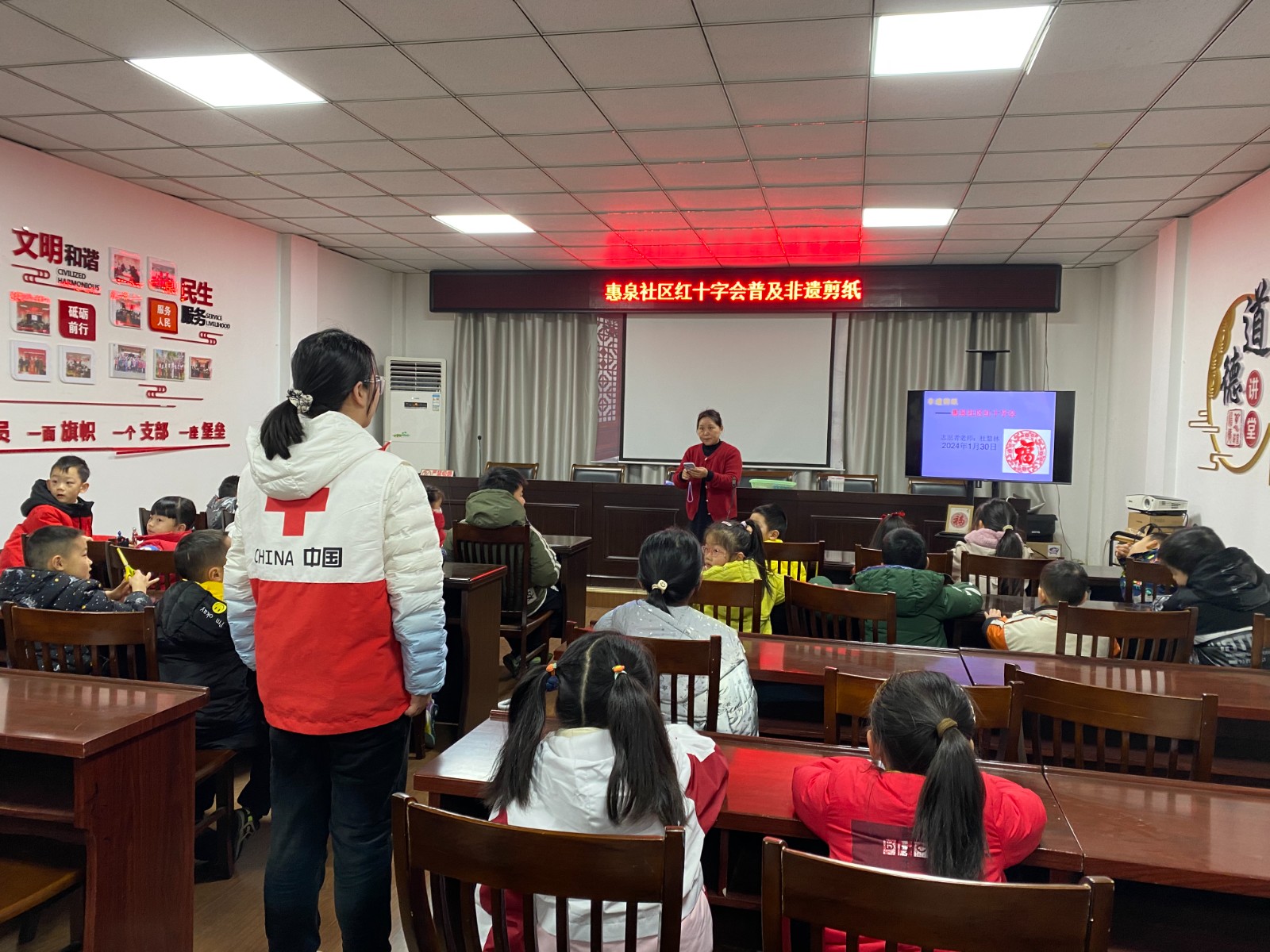 剪纸作为一门源于中国镂空艺术的传统手工技艺,在2010年就被正式列入《世界非物质文化遗产名录》。2024年2月2日,为弘扬中华优秀传统文化,丰富辖区青少年的课余文化生活,能近距离感受非物质文化遗产的独特魅力,山北街道惠泉社区红十字会开展了“非遗剪纸”迎新活动。