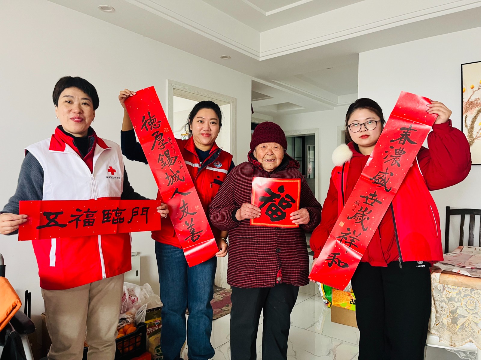红十字志愿者和社区工作人员给辖区高龄老人送上了春联、春节慰问物资以及节日的问候,他们耐心倾听居民心声,与他们谈心交流,详细了解他们的身体状况和生活情况,让他们感受到大家庭的温暖与关爱。