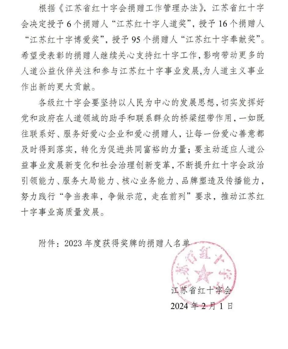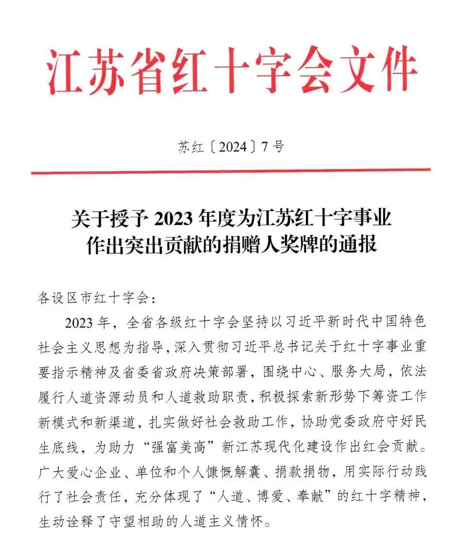[无锡市]喜报:无锡31家单位荣获“为江苏红十字事业作出突出贡献捐赠人奖”