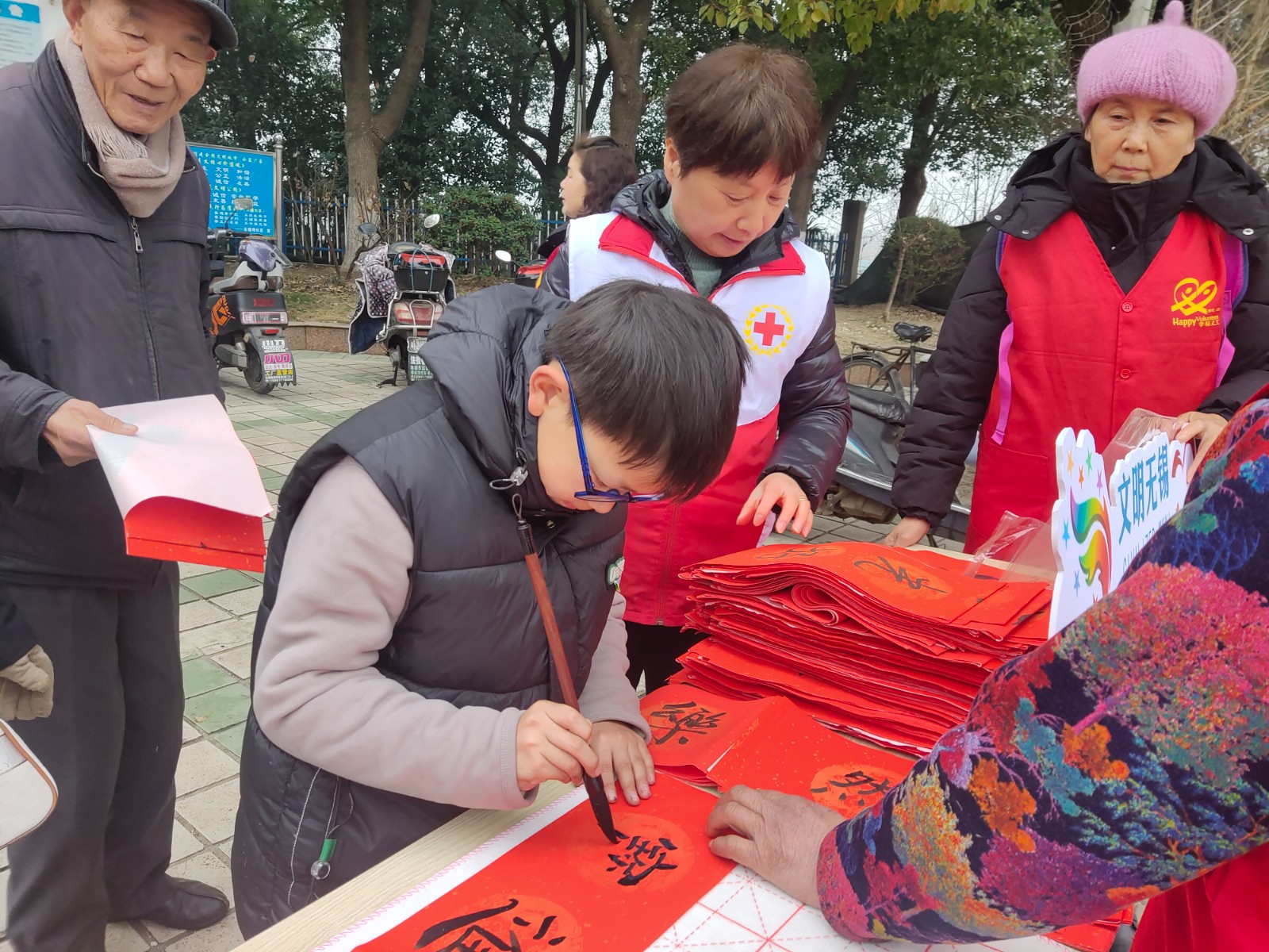 春联,是笔尖上陈久弥香的年味,是红红火火、热热闹闹的祥和喜庆。为进一步弘扬中华优秀传统文化,营造节日的喜庆氛围,1月30日上午,惠山区洛社镇石塘湾社区红十字会联合老年书法协会、关工委举办了“笔墨润新春 龙年迎福运”春联送福活动,老少书法爱好者们齐上阵,挥毫泼墨共贺新春,为辖区居民送上最真挚的祝福。