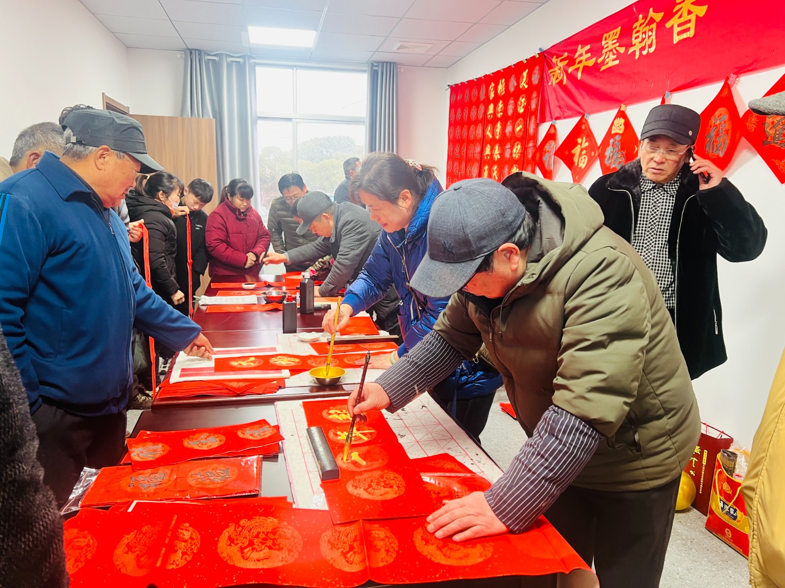 活动设置了三个分会场,第一分会场为制花银柳,志愿者将制作银柳所需的材料整齐地摆放在桌面上,将活动室渲染成了“新年红”,青少年们在志愿者的指导下,一串串带有新年氛围的瓶花银柳作品呈现在了大家的眼前,再挂上写有祝福语的吉祥贺卡,相约一起共赴美好的一年。第二分会场为剪窗花,志愿者为老人孩子讲述了剪纸的由来,展示过年用的窗花图案。随后,讲解了剪窗花的步骤,大家充分发挥想象力和创造力,一幅幅精美的窗花在手中跃然而出,一把剪刀,一张红纸,剪出浓浓年味,剪出吉祥如意,剪出对新年的美好祝福。第三分会场为写春联,书法爱好者摆开书案,铺开红纸,为村民挥毫泼墨,一个个“福”字,一幅幅春联,一气呵成。村民们兴致勃勃的观看老师写春联,欣赏赠送的春联福字。“我希望通过自己的笔墨为大家送去祝福。”当天,参与绘制书法的书法协会贾会长说道。