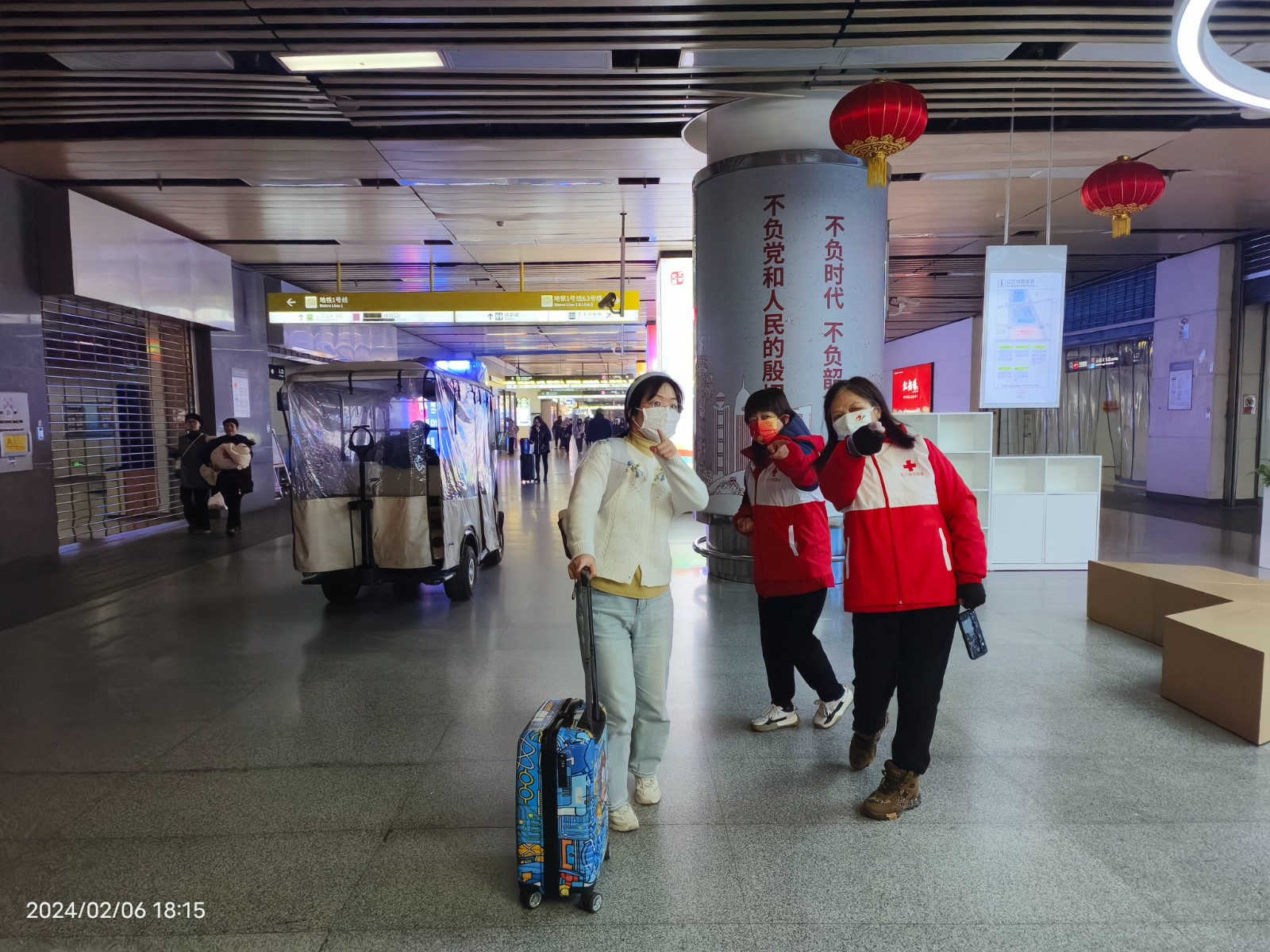 “这项活动我已参加了15年,从当年的小姑娘到现在为人母带着孩子一起参加,今年来到火车站,我们所在团队想以无锡人热情贴心的服务给大家展现‘来锡皆是客’的良好形象,为创造一个和谐、温馨的春运环境贡献自己的力量”,市红十字网络志愿队副队长、刚刚荣获省优秀红十字志愿者典型的顾瑾介绍说。