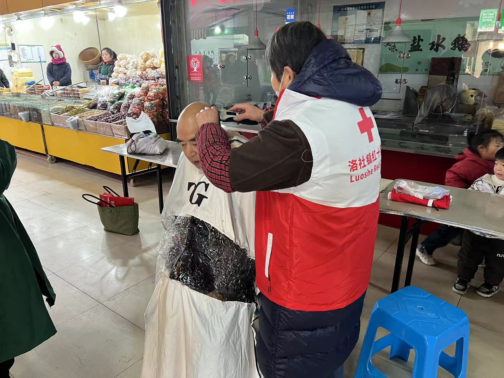 2月4日正值立春,此时节,春风送暖,阳光和煦,大地苏醒,生机勃发。当天,惠山区洛社镇雅西社区红十字会联合相关部门在鑫雅农贸市场广场开展“冬日便民迎新送福 党群服务暖意浓浓”的便民服务活动,活动现场有提供免费测血糖、测血压、理发、磨刀等多样便民服务项目,全力打通服务居民的“最后一公里”。