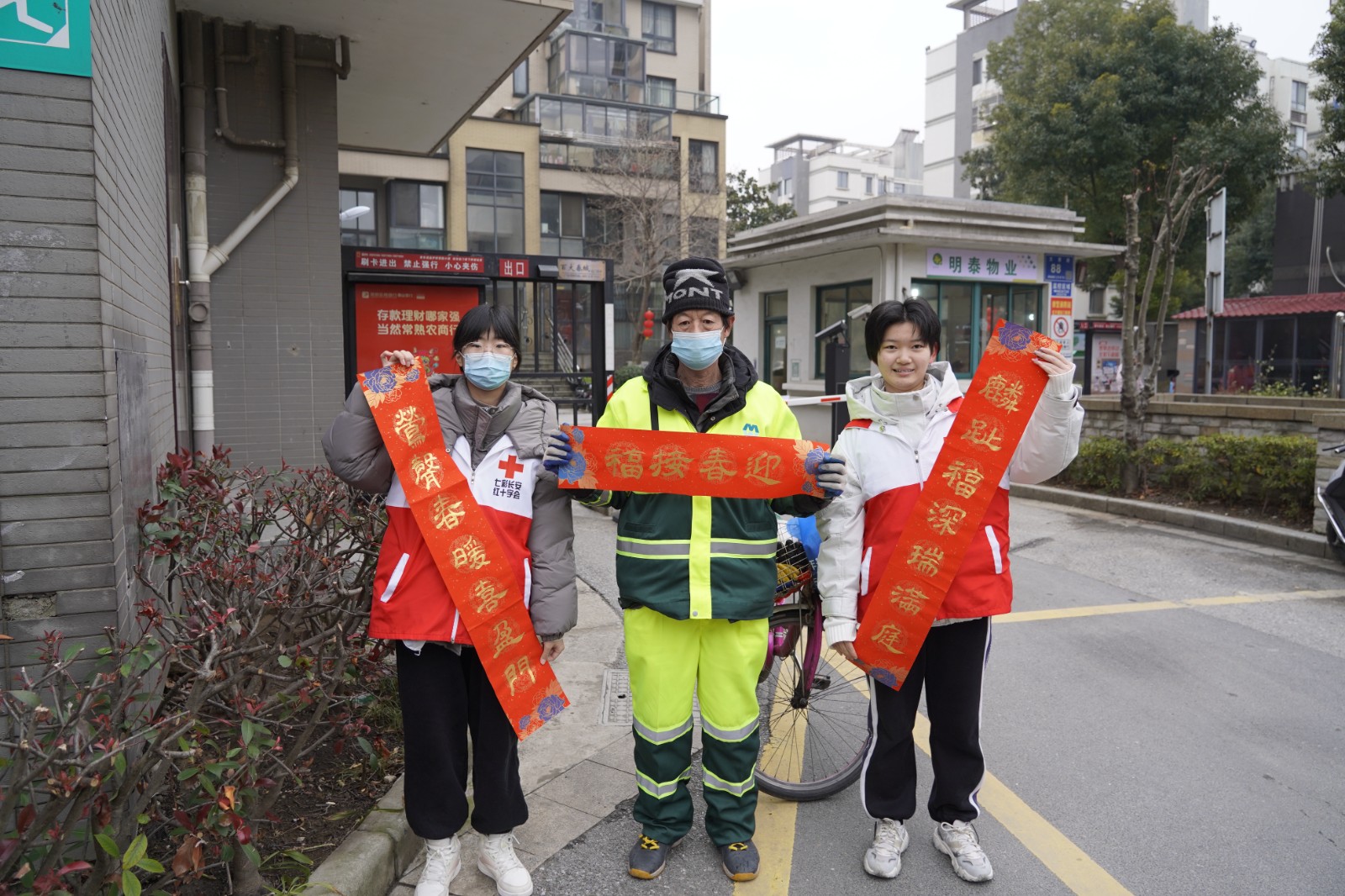 墨香迎春,安全如意。“辛苦啦,师傅,我们来给您送福啦,龙年大吉!感谢您在春节来临之际,依旧坚守岗位,为美化城市做出巨大贡献!”“不辛苦,我们是城市‘美容师’,美化城市是我们的工作使命!”环卫工人张师傅这样说道。同时,红十字志愿者们还将春联送到了“城市管家”、外卖小哥的手中,在严寒天气中给他们送上暖心关怀和新春祝福,叮嘱他们一定要注意交通安全,一定要确保身体健康。