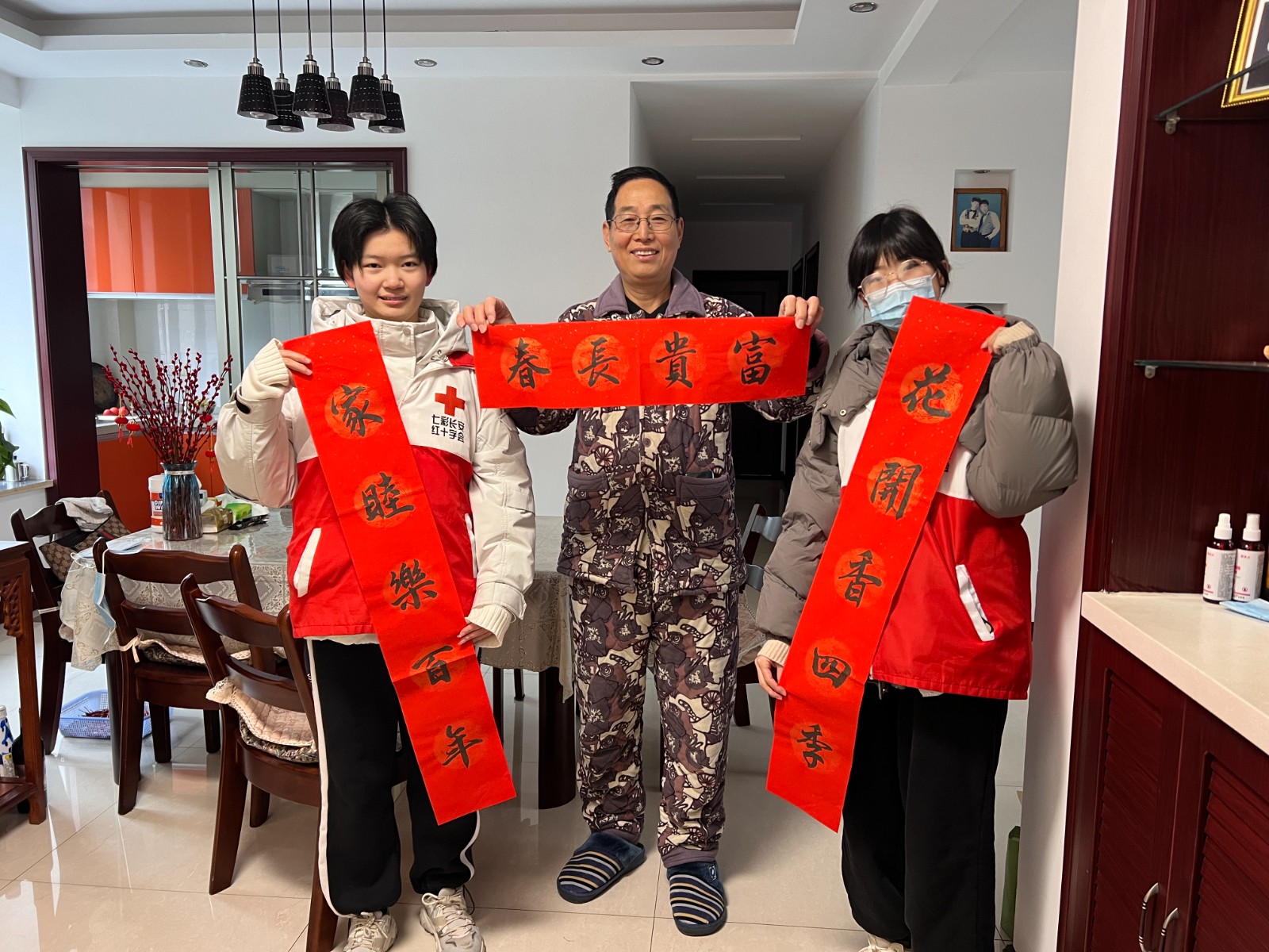 墨香传情,暖心上门。“伯伯,新年快乐!我们来给您送福啦!”“你们又来看我啦!外面冷,快进来!”家住百大春城小区的张伯伯热情地欢迎志愿者进门:“非常感谢你们来看望我,你们来我真开心。”每到一户老人家中,红十字志愿者们都会热情地与老人谈心、拉家常,详细了解他们的生活、身体状况,认真倾听他们的困难诉求,叮嘱他们保重身体,注意保暖,在家注意用火、用电安全,有困难及时向社区反映,社区一定会尽全力帮助解决。