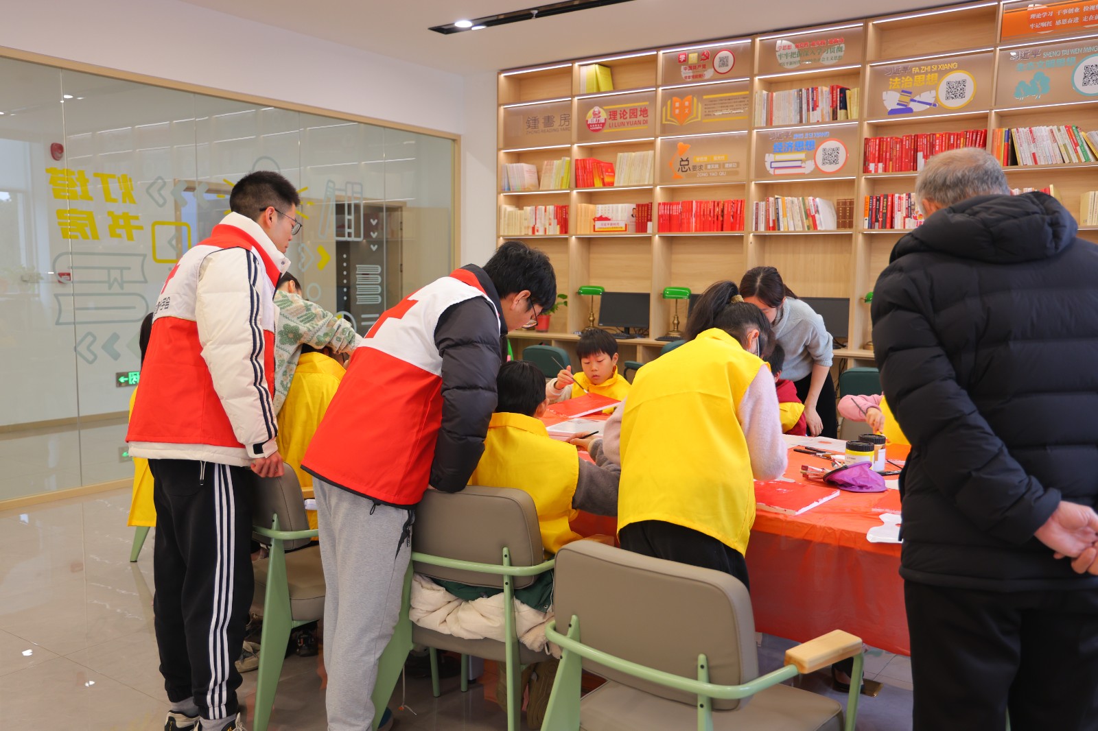 稚童巧手绘石英,五彩斑斓映眼明。小朋友们迎来了新的挑战——石英画手工制作。石英画融合了绘画和手工的技巧,对于小朋友们来说既新奇又有趣。红十字志愿者们首先给孩子们介绍了“年”的由来,以及各地不同的新年风俗特色,孩子们认真听老师的讲解,同时心里也在构思着自己的新年作品。在老师的引导下,孩子们讨论着自己知道的“年味”,随后将自己对于新年的美好期许用五彩的石英颜料勾勒出美丽的画面,有笑语盈盈的福娃、有可爱的小龙,还有那象征团圆和美满的灯笼。每幅作品都充满了童真和创意,仿佛在诉说着小朋友们对美好生活的向往和对新年的祝福。