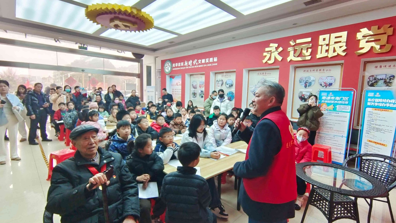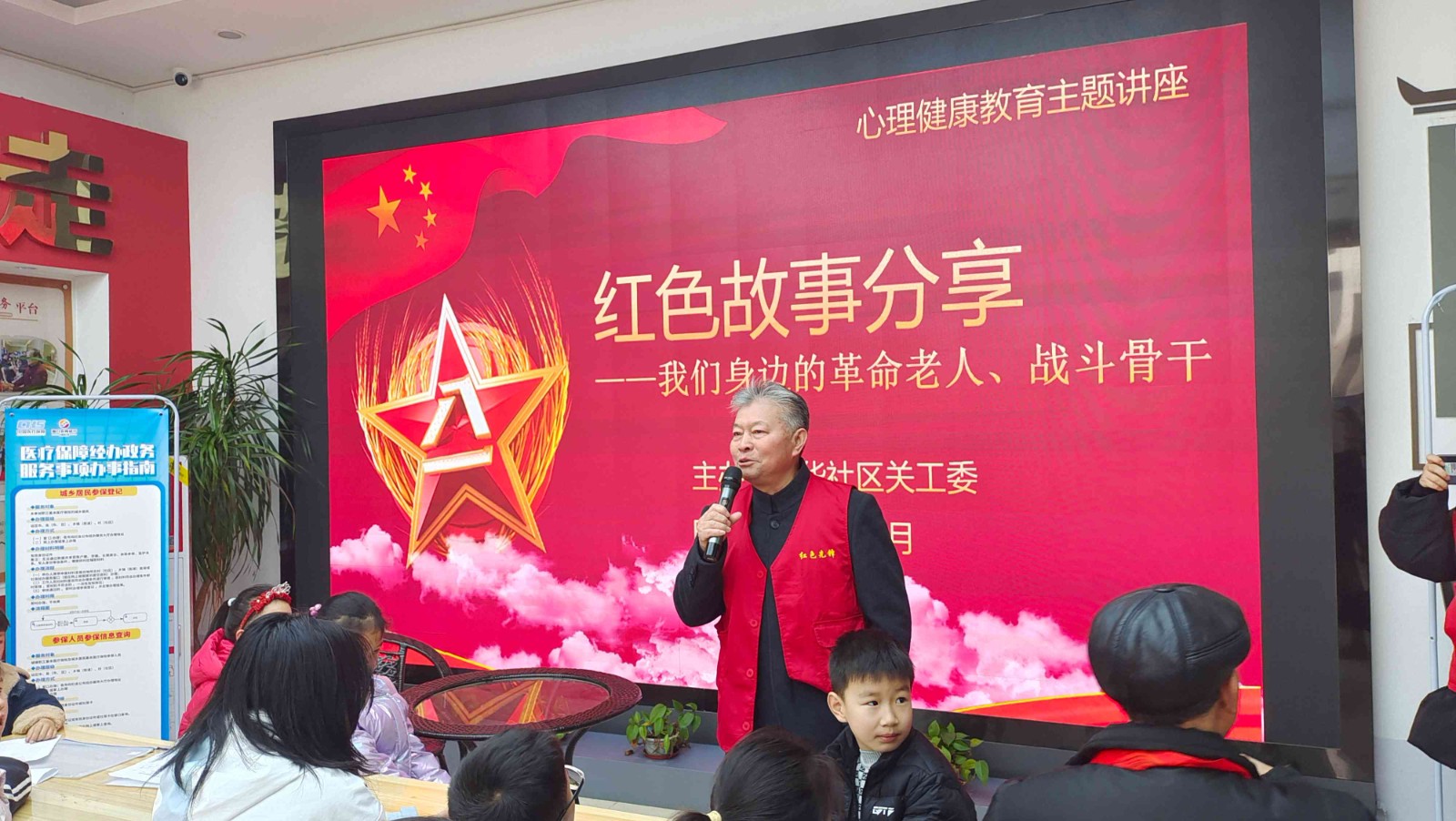 近日,光华社区博爱家园开展了一项特别的活动——“听一听身边的红色故事”。这一活动的目的在于通过分享和传承红色故事,弘扬革命精神,让社区居民更加深入地了解和感受红色文化的魅力,活动吸引了很多小朋友,社区大厅座无虚席。