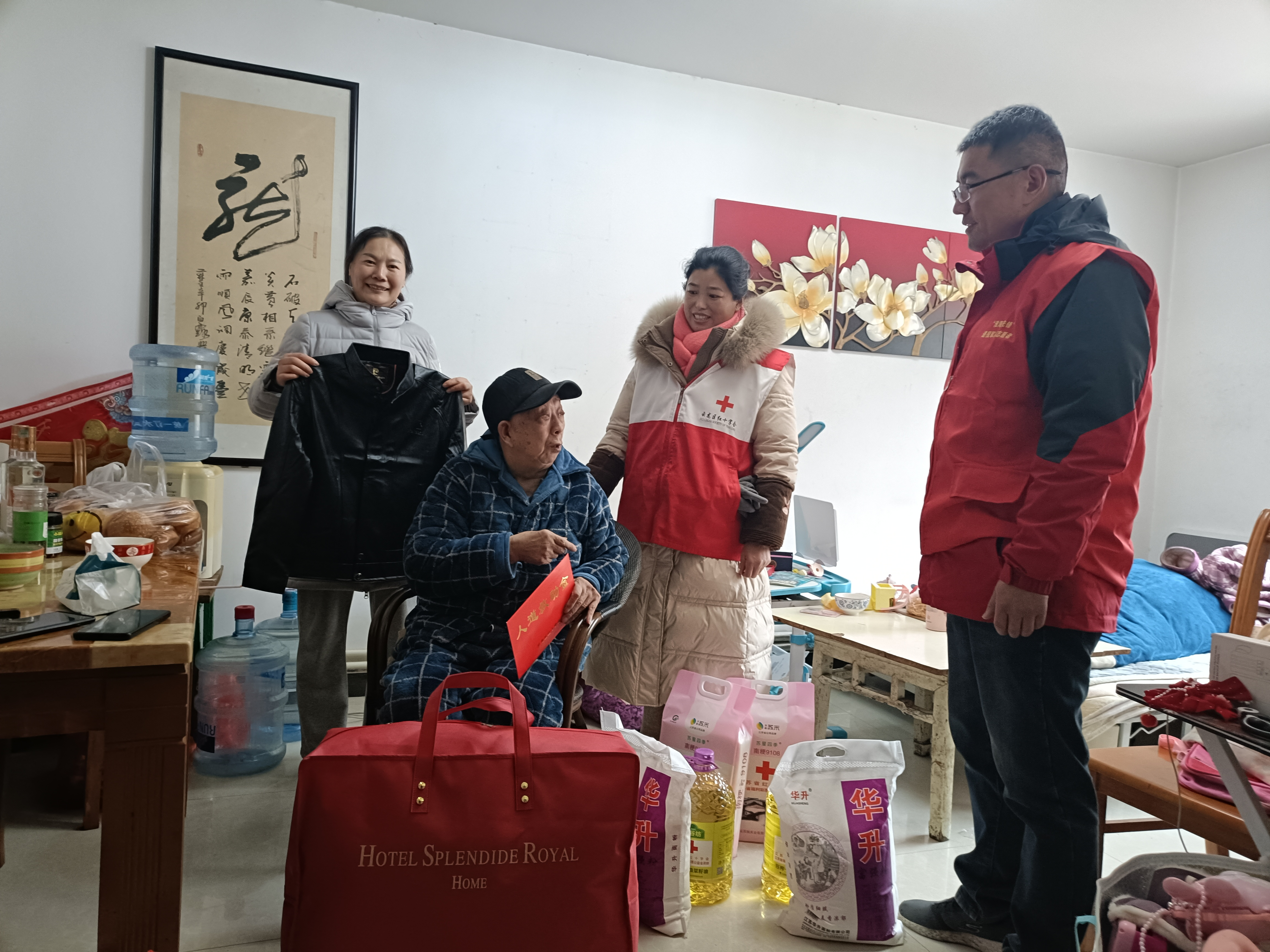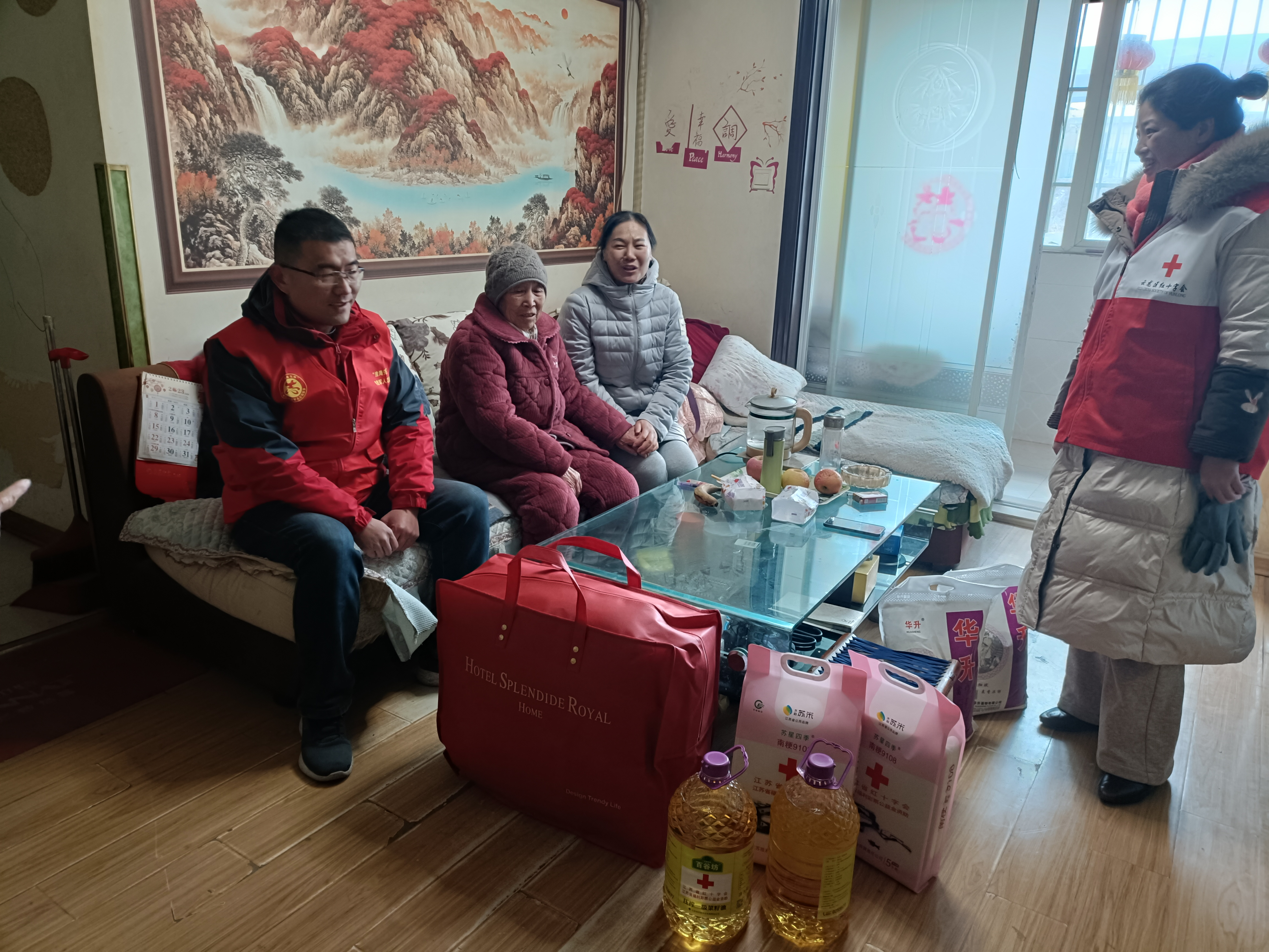春节期间,为保障社区低收入群众过一个祥和温暖的新春佳节,云龙区骆驼山街道金骆驼社区红十字会开展“岁寒送暖迎新春”集中走访慰问活动;金骆驼社区红十字会服务站工作人员、红十字会志愿者等人参加走访,在困难居民家中,社区红十字会工作人员送上米、面、油、棉被、慰问金等,详细询问他们身体健康状况和家中生活状况,并祝他们春节快乐。把党和政府的关怀送到社区困难群众心坎上,确保他们过一个幸福温暖的春节。