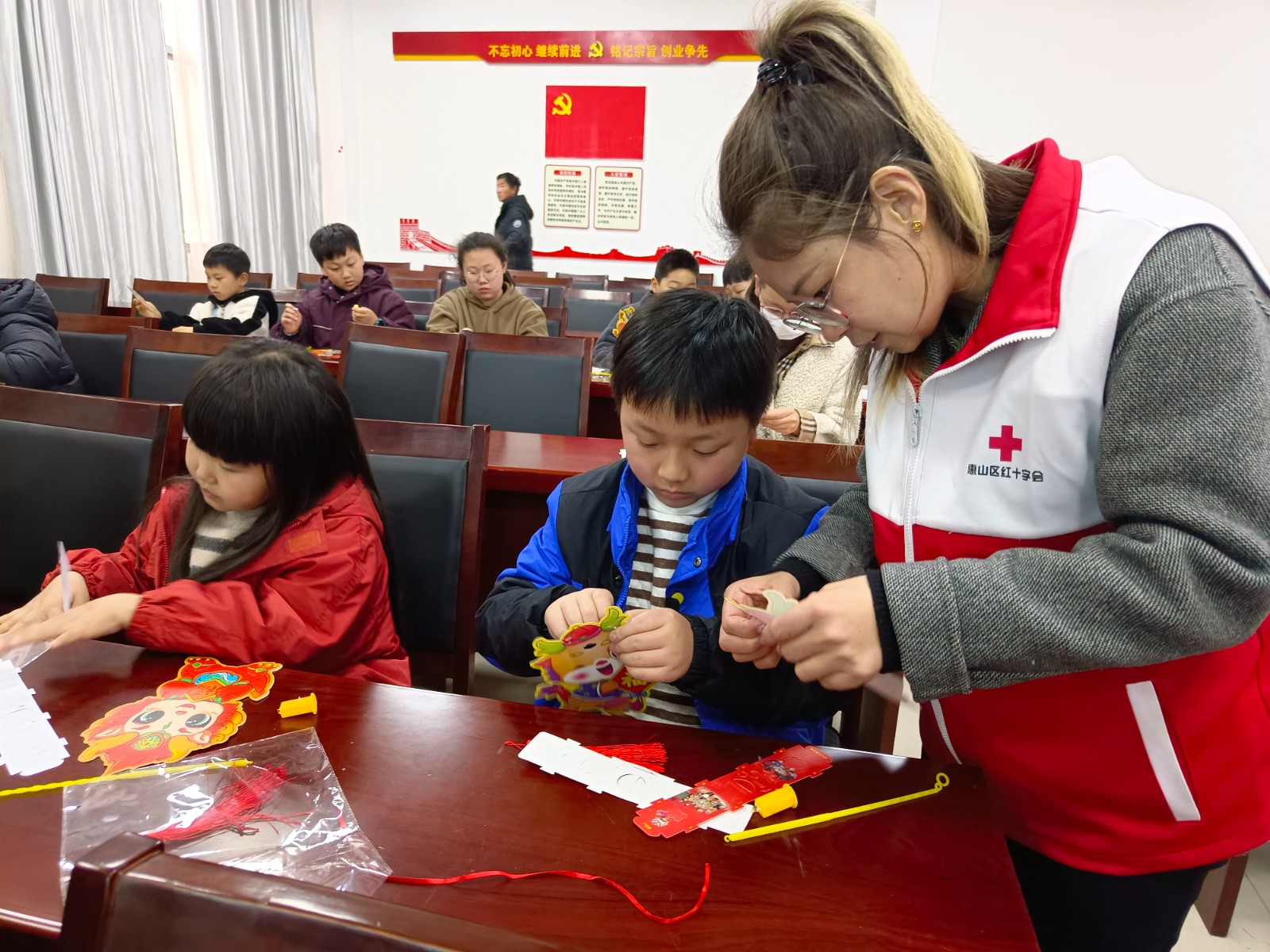 活动伊始,红十字会志愿者首先向青少年儿童普及与交流元宵节习俗知识,介绍元宵节的民俗活动等,并让同学们回家后观察身边的长辈父母是如何为节日做准备的,鼓励同学们和家人一起做汤圆、吃汤圆等。随后,进入猜灯谜环节,谜题涉及字谜、植物类、动物类等,融知识性和趣味性于一体。青少年儿童兴致盎然,或冥思苦想,或交头接耳探讨灯谜的答案……猜到谜底的小朋友可以获得一次抽奖机会,抽取精美的礼品。在欢声笑语中,青少年儿童乐有所学,收获满满。最后,到了孩子们翘首以盼的做灯笼环节,社工进行了示范,并细心指导大家制作灯笼,小朋友们迫不及待地打开材料包,按照步骤穿绳、安灯,小心翼翼的拼接起来,大家互相帮助,不一会儿,一个个透着喜庆的花灯完成。小朋友们的笑脸中洋溢着大大的满足和兴奋,暖暖的笑脸,让我们在寒冷的冬季暖彻心扉。