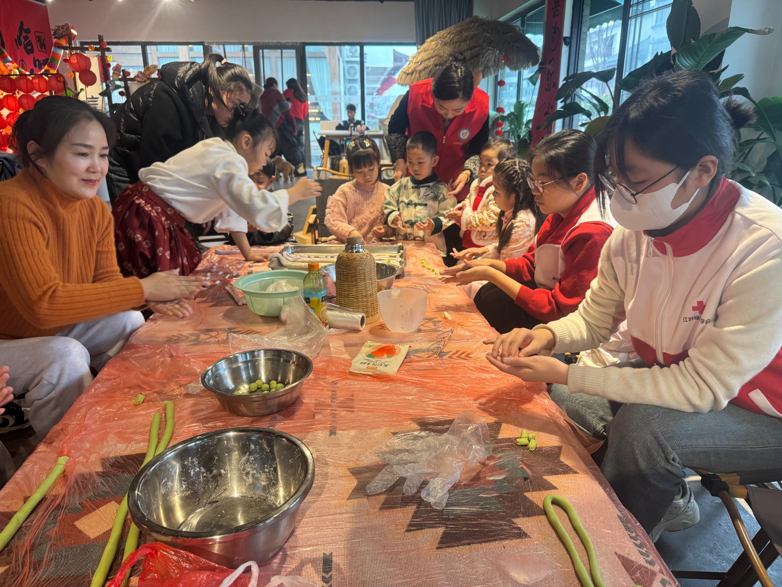 活动一开始,红十字志愿者为大家介绍了元宵节的由来与风俗,加深了大家对传统佳节——元宵节的认识。红十字志愿者提前准备好包汤圆所需的糯米粉、黑芝麻等食材,在志愿者和家长的引导下,小朋友们挽起袖子,揉面团、搓汤圆、放馅料、捏造型。一双双小手的搓转,一个个圆圆乎乎的汤圆就出现在大家眼前。大家还互相交流着包汤圆的心得,分享着生活中的趣事。现场氛围其乐融融,充满了浓浓的节日气息。随着一碗碗热气腾腾的汤圆出锅,大家一边拉着家常,一边品尝着香甜软糯的元宵,脸上洋溢着幸福的笑容。除了搓汤圆,红十字会的工作人员还组织了制花灯、猜灯谜、闹元宵等丰富多彩的活动,营造欢乐祥和、健康向上的节日氛围,现场气氛热烈,大家在欢声笑语中感受着元宵节的乐趣。一个个灯笼,一颗颗汤圆,传递的是一份份爱心,让大家在活动中感受到了节日的快乐和温暖和谐家园一家亲的幸福感。