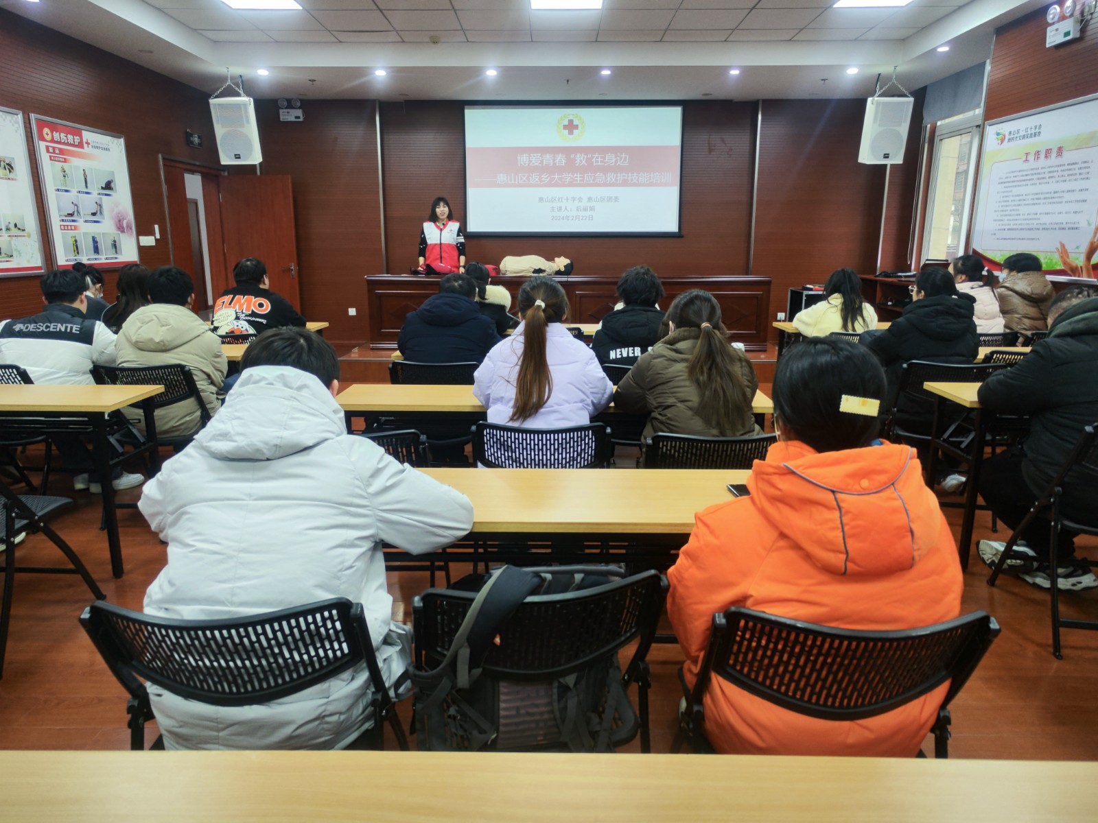 2月22日下午,共青团惠山区委和惠山区红十字会在区红十字会服务中心联合开展大学生普及性应急救护培训,为32名返校、返乡大学生开展了救护技能培训。