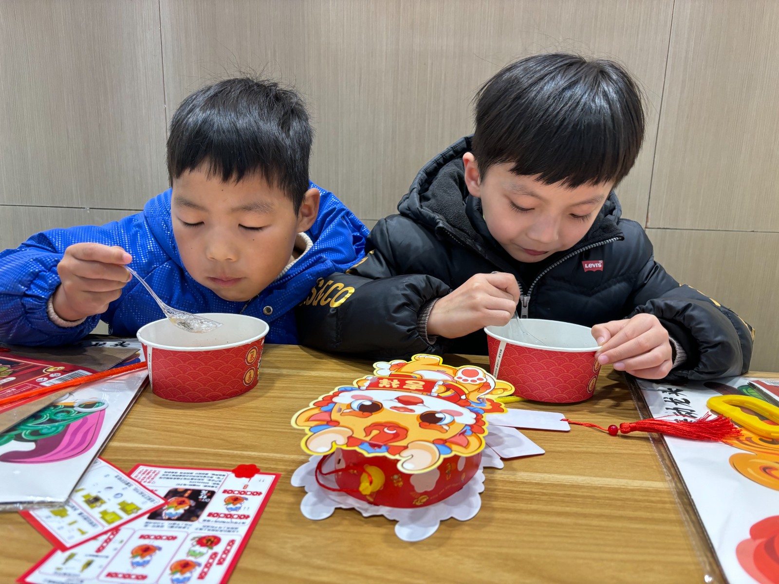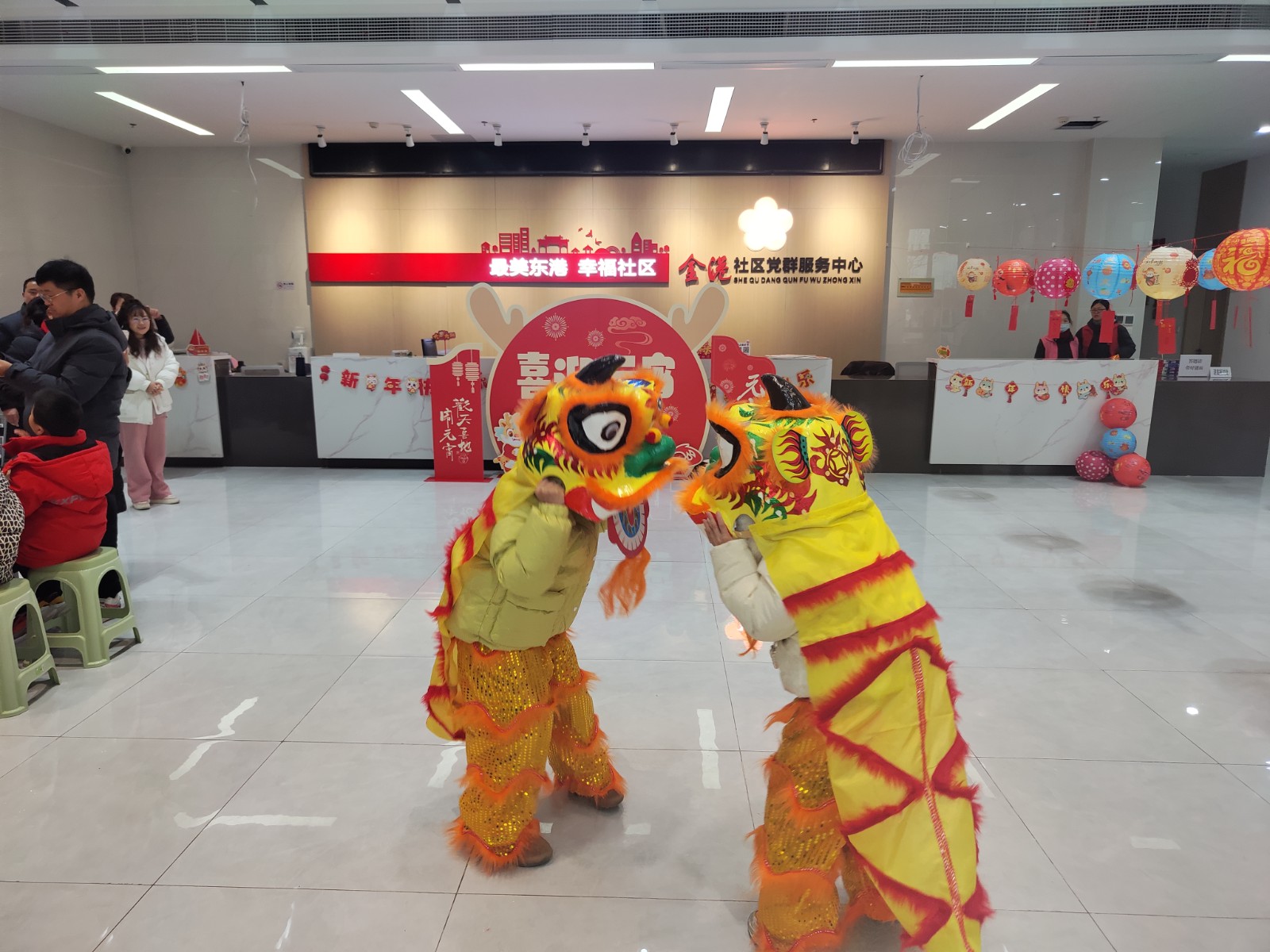 尽管天气有些不尽人意,但屋内的气氛却异常热烈。社区的志愿者们早早就开始忙碌起来,精心地将五颜六色的花灯挂满了整个场地,营造出一片喜庆热闹的氛围,等待着居民们前来观赏。