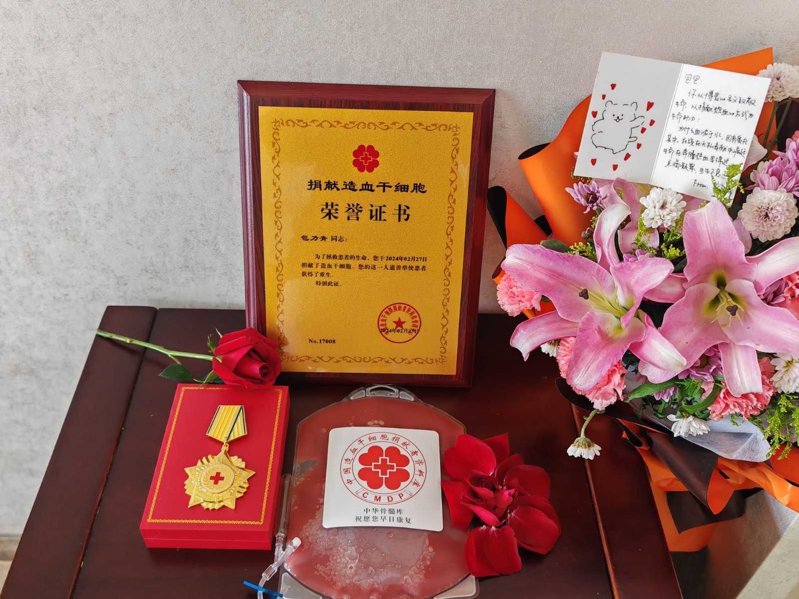 至此,包先生成为中华骨髓库第17003例、江苏省第1323例、南京市第182例、秦淮区第25例捐献者。