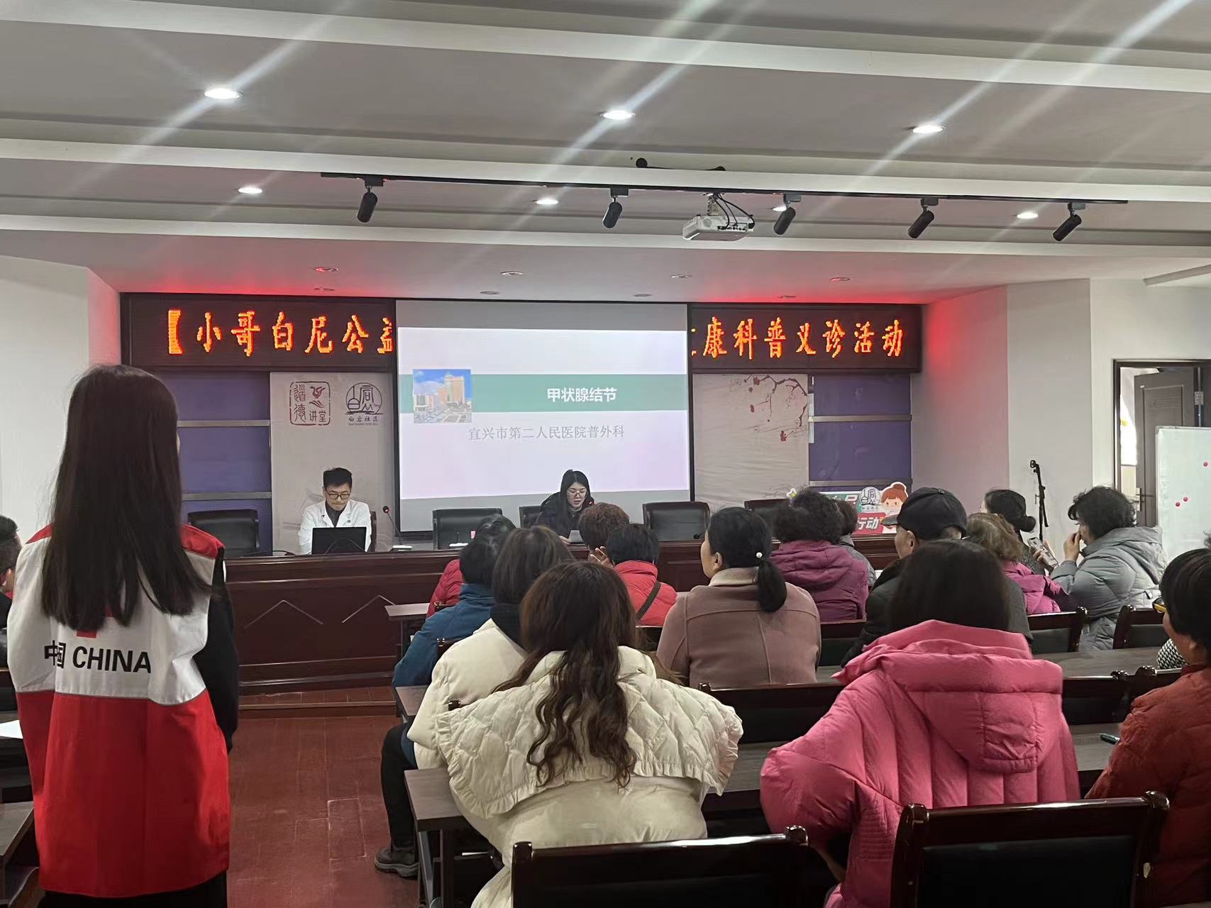 在三八国际妇女节来临之际,为增强妇女自我健康保健意识,进一步提升妇女的健康素养。3月1日丁蜀镇红十字会联合宜兴市第二人民医院和白宕社区为社区妇女进行甲状腺健康科普义诊活动。