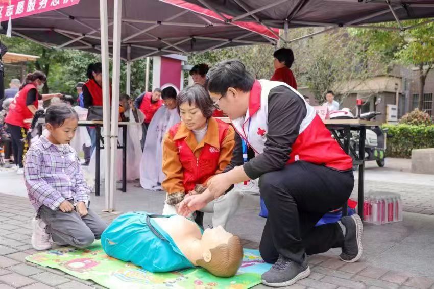 在无锡市军休中心的健康义诊区和红十字会义诊区,志愿者们耐心的为居民进行心脑血管、消化系统、呼吸道等方面的健康问诊,进行免费测量血压、血糖,叮嘱居民平时注意健康饮食,适量运动,引导大家做自己健康的第一责任人。同时也有志愿者在现场指导居民朋友如何进行心肺复苏等应急救护。