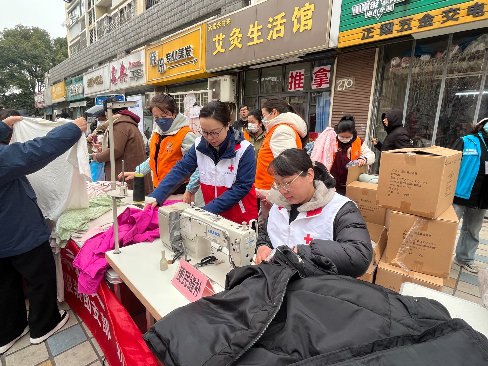 在健康义诊区,太湖中医院的红十字志愿者们为居民提供了免费的血压、血糖测量服务,并耐心解答居民们的健康问题,给予专业的健康建议。在免费洗鞋服务区,红十字志愿者用他们的勤劳的双手为居民免费擦洗鞋子,让居民们的鞋子焕然如新。在便民缝补区,红十字志愿者们准备好了缝纫工具和各种布料,为居民们提供衣物修补服务。无论是衣服上的小破洞,还是拉链、纽扣的损坏,志愿者们都耐心细致地进行修补。