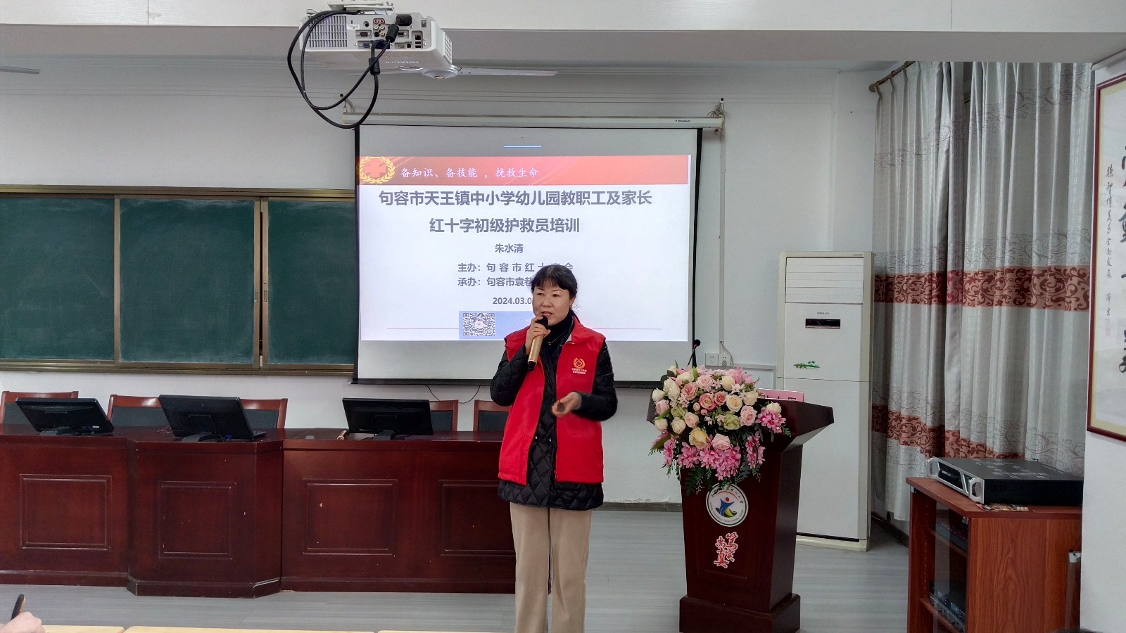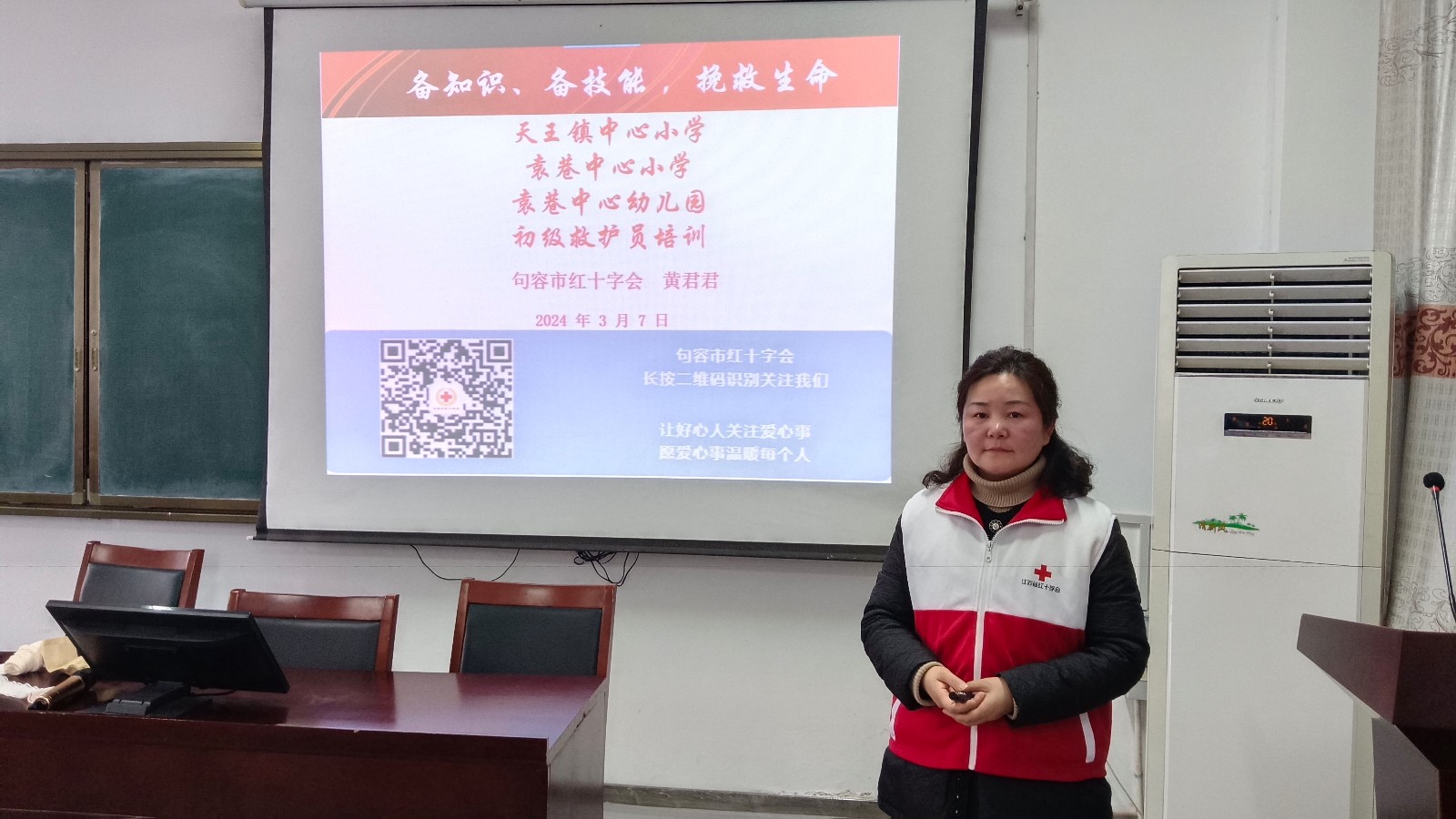 3月7日,句容市红十字会救护培训讲师朱水清、黄君君、钱隽、陈达庆一行四人来到袁巷中心小学开展应急救护知识培训,来自天王镇中心小学、袁巷中心小学、袁巷中心幼儿园的教职工和部分学生家长77人参加培训。