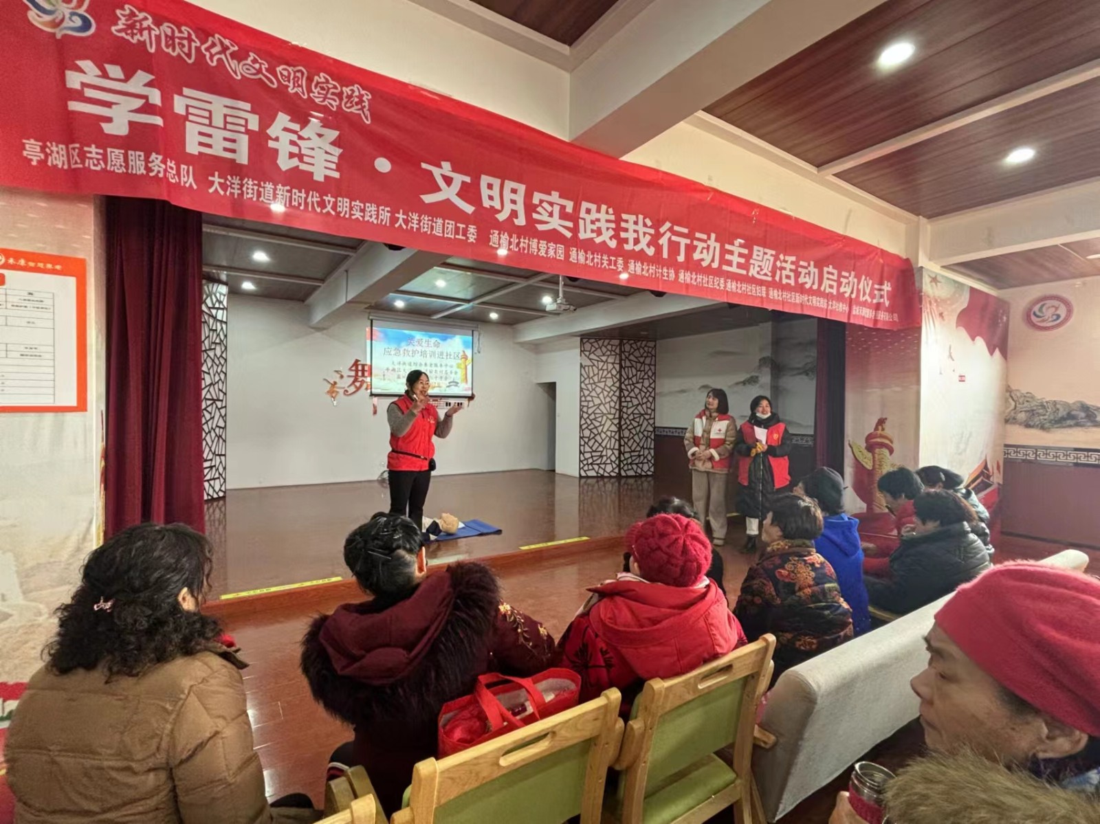 3月7日,亭湖区大洋街道通榆北村社区“博爱家园”开展红十字应急救护培训,开启社区“学雷锋”月活动。