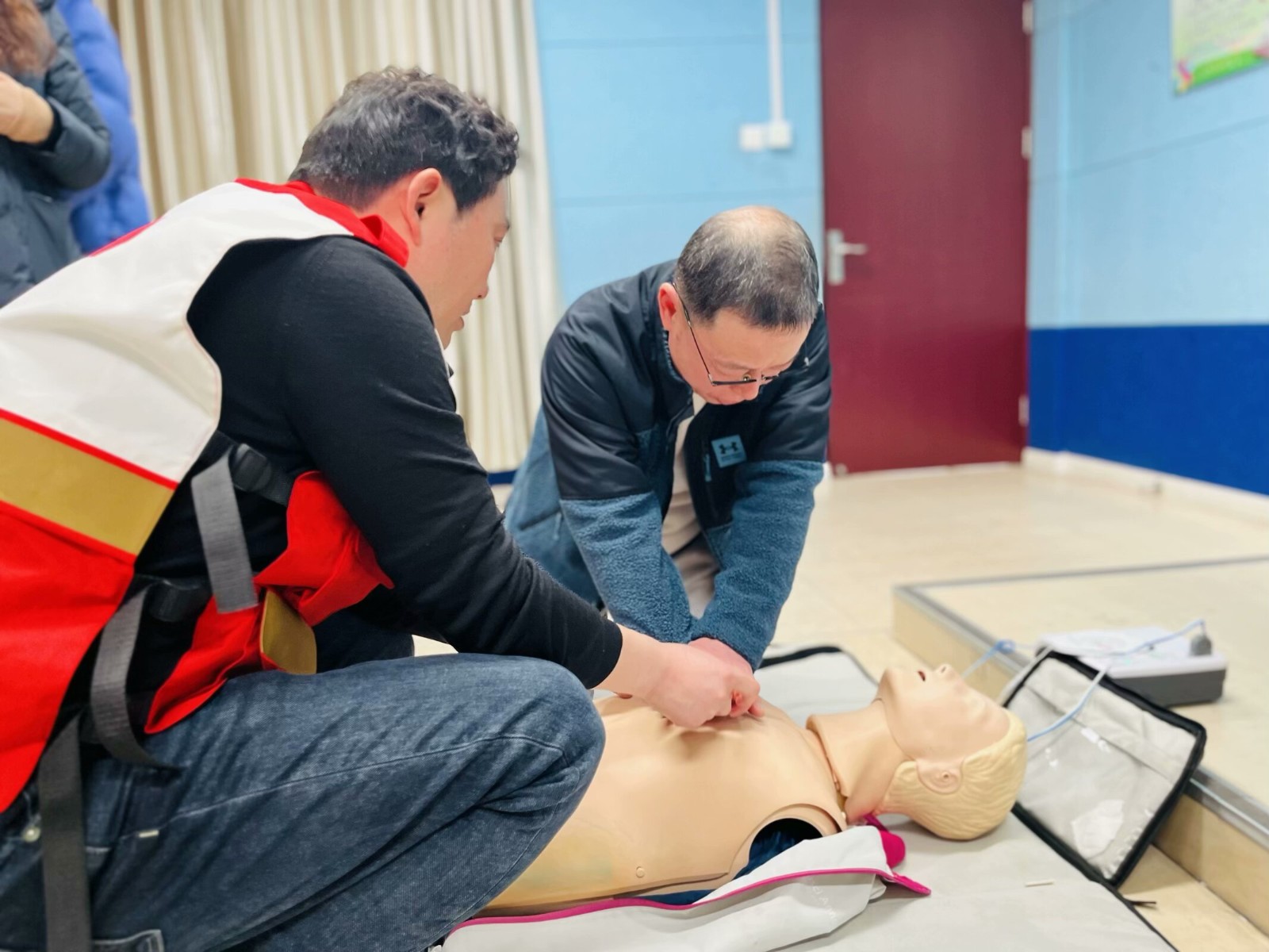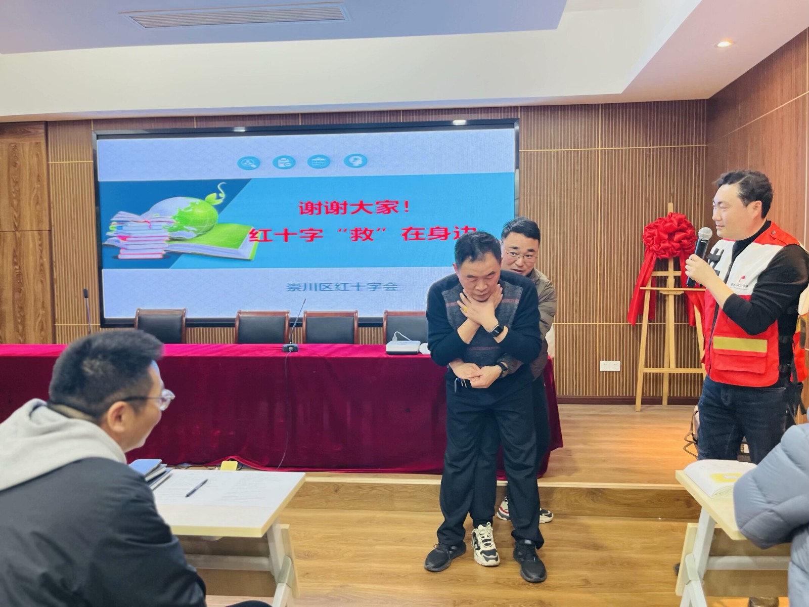 本次活动由崇川区红十字会资深讲师、崇川区卫健委医政科科长曹雪峰为大家授课。培训分为理论讲解和实操考核两部分,内容主要包括心肺复苏术、海姆立克急救法和自动体外除颤仪(AED)的使用。