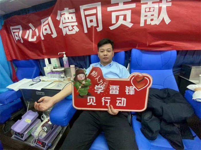 3月6日上午,盐城海事局党委、工会组织开展“学雷锋”无偿献血活动,广大党员、职工积极报名参加,这也是该局连续第7年组织无偿献血活动,局长程欣带头献血,这次他又献400毫升,累计献血量达4000毫升,在他的带领下,很多献血新人也加入献血队伍,半天共有20人参加献血,累计献血量达5400毫升。 雷锋精神永传承,奉献热血爱不停。“党徽红”延续"生命红",海事人用一腔热血为生命加油,让雷锋精神在新时代绽放更加璀璨的光芒!
