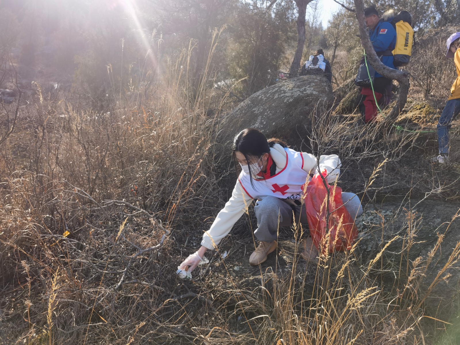 小志愿者们在到达目的地后,便迅速展开了地毯式搜索,他们不畏山路崎岖,认真清理遗留在山道草丛中的垃圾。一路上一个个弯腰忙碌的身影传来阵阵欢声笑语,他们用双手激活了这片静谧又美丽的山林,让整片山林充满了春天的生机和活力。