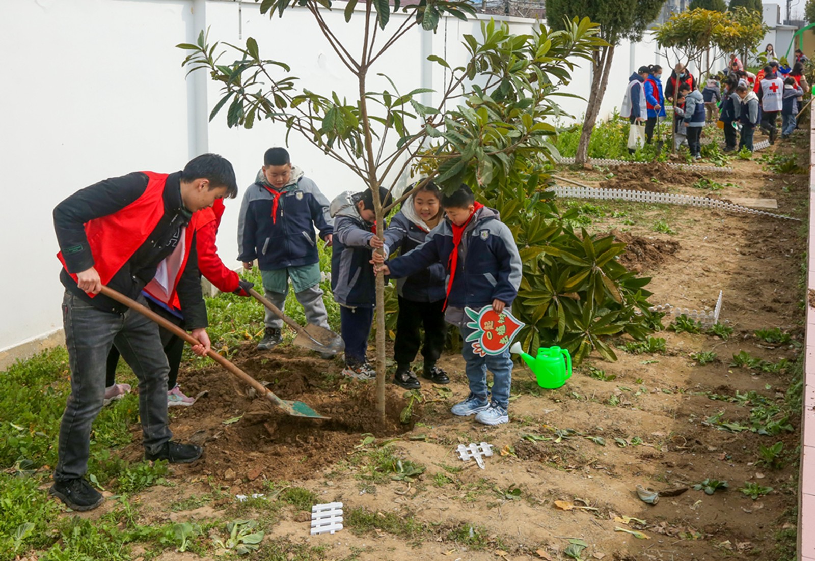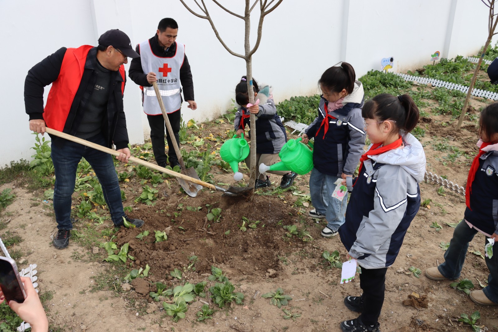 [盐城市]小手拉大手 添绿护绿一起走——射阳县红十字会联合双语小学开展义务植树活动