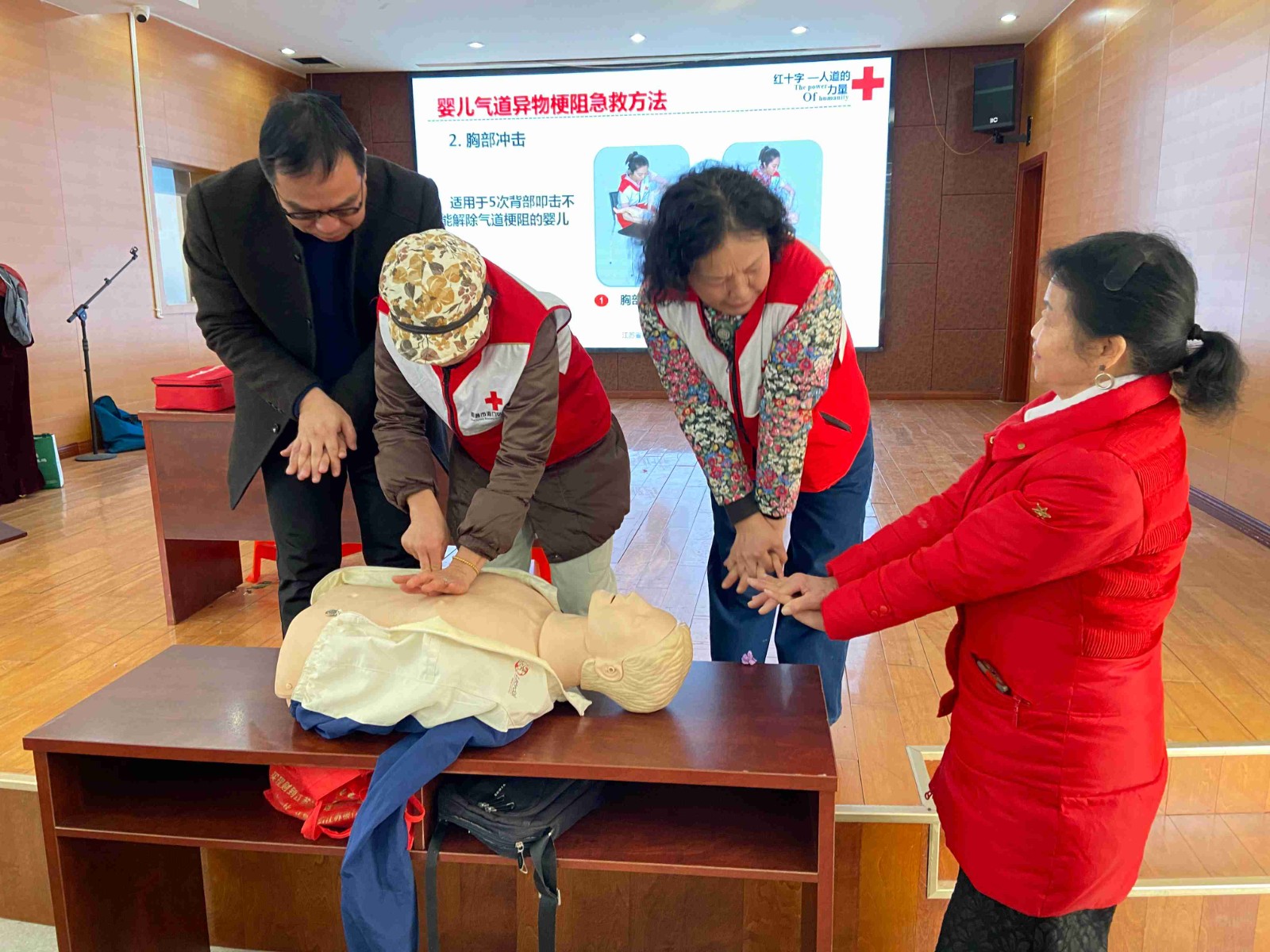 3月8日下午,区红十字会走进老年大学,为区社区学院和芳华护理院的志愿者开展了一期应急救护普及培训。