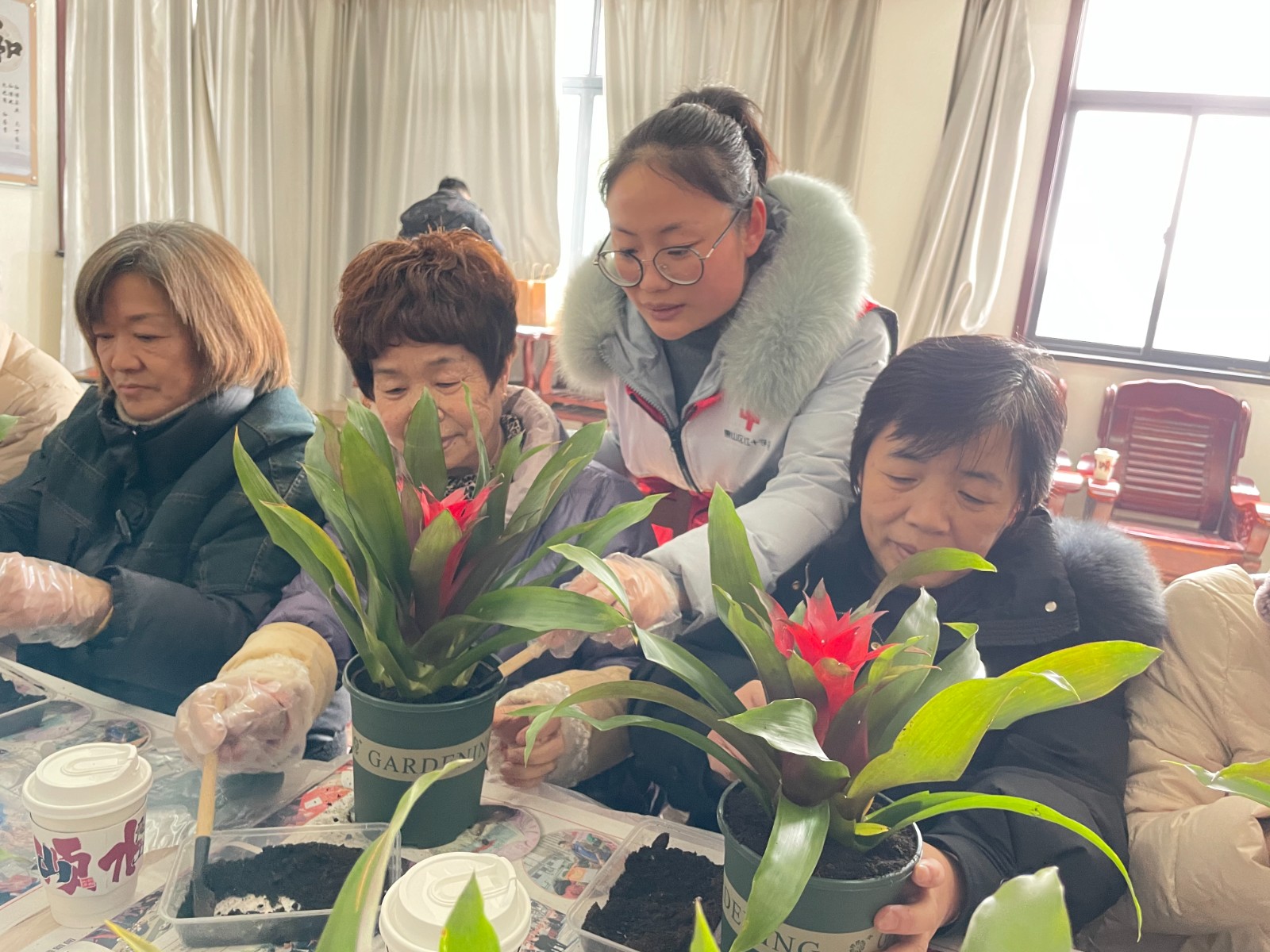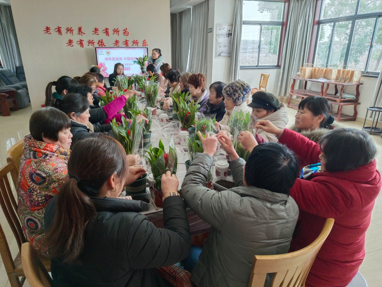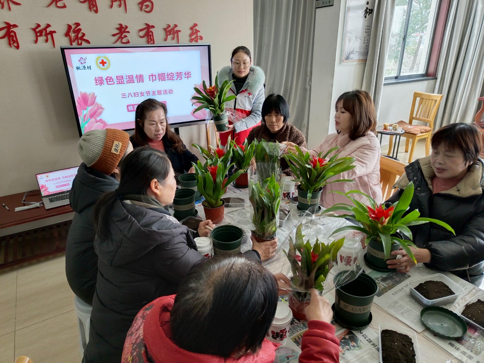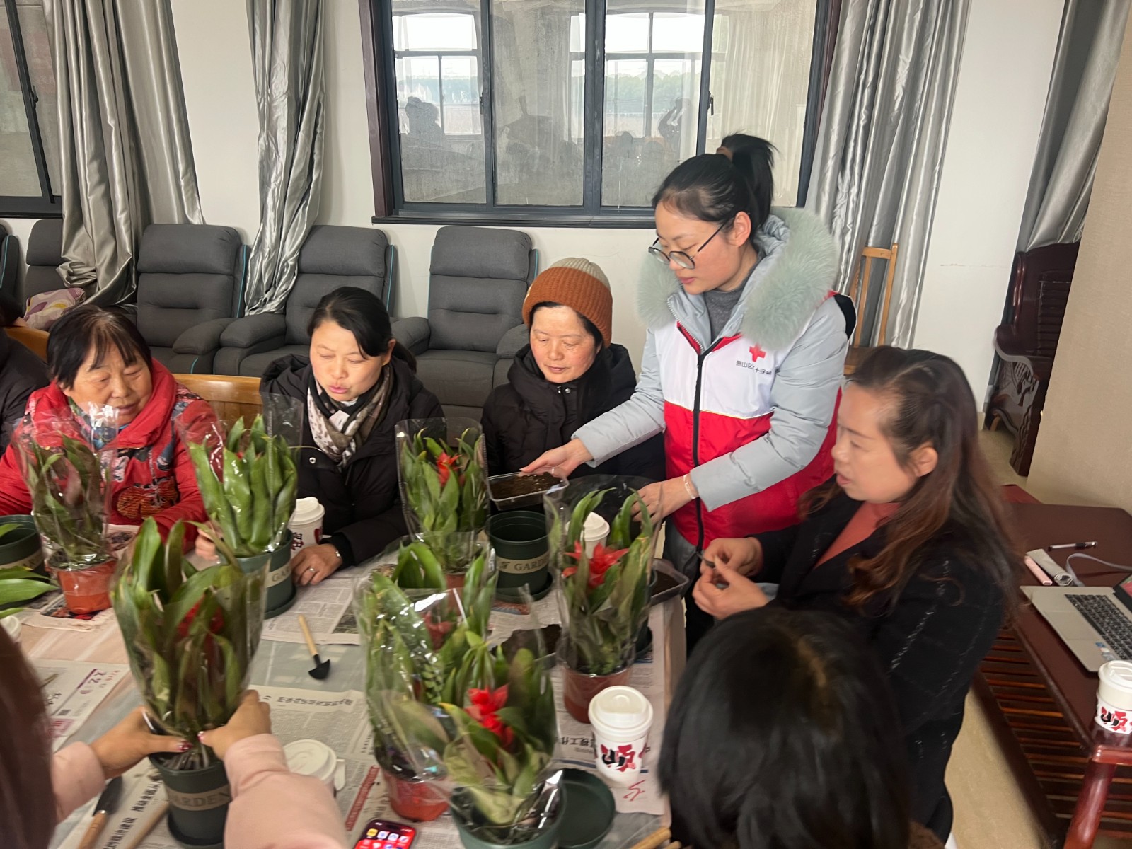 春风有信、花开有期,为庆祝国际三八妇女节,增强辖区女性自我意识和团队合作精神,丰富精神文化生活,增加绿色环保意识,3月8日上午,惠山区阳山镇桃源村红十字会携手惠山区传乐公益在村委开展了“绿色显温情 巾帼绽芳华”庆三八节盆栽种植活动。