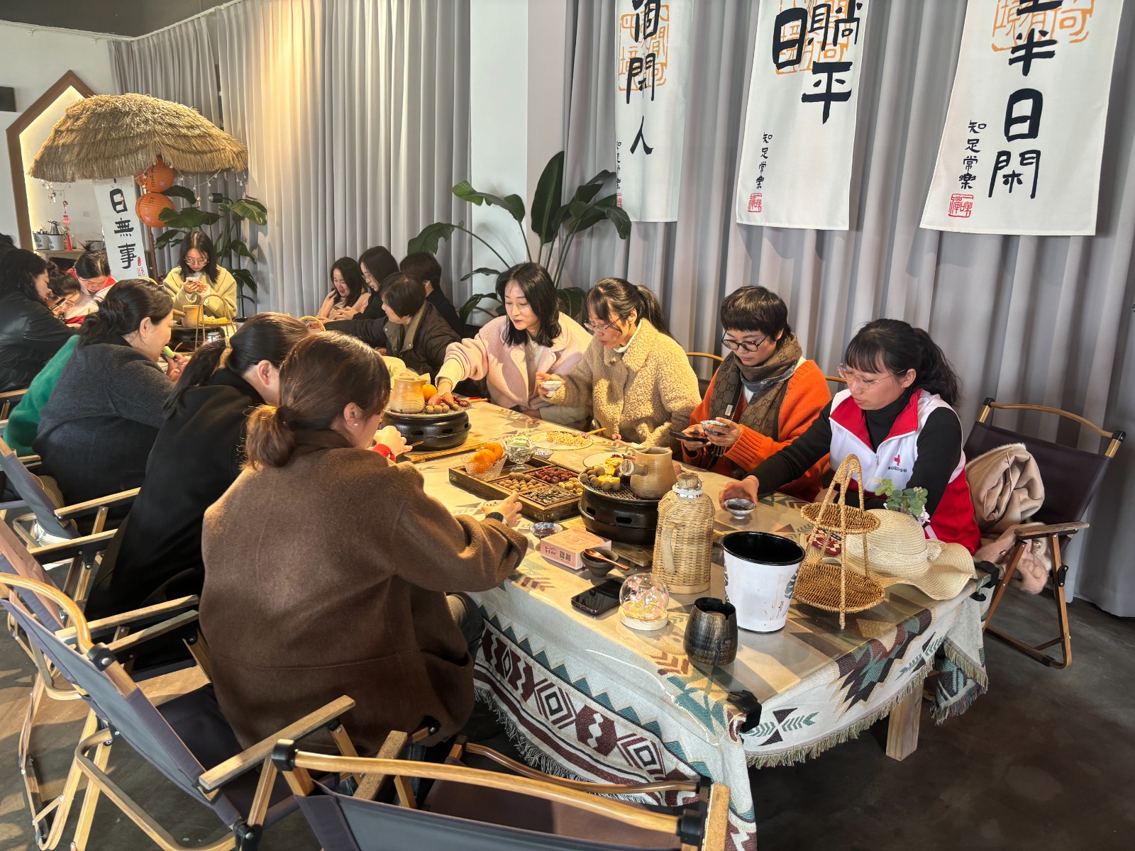 第二个环节茶艺篇:围炉煮茶,围炉煮茶得区域也是人气满满,大家共同体验传统的茶艺文化。边品尝着香浓的茶水,边畅谈着生活与工作中得点点滴滴。