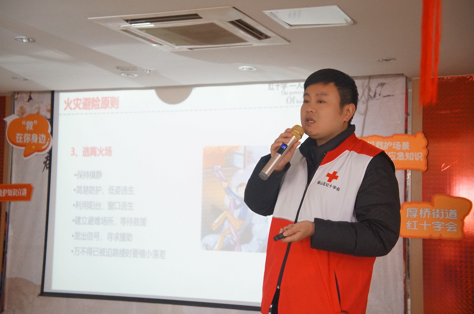 活动邀请区红十字会应急救护培训师周卫龙为大家普及火灾逃生、触电急救、猫狗咬伤、煤气中毒等家庭安全知识。意外伤害难以预料,掌握急救知识方能有备无患。