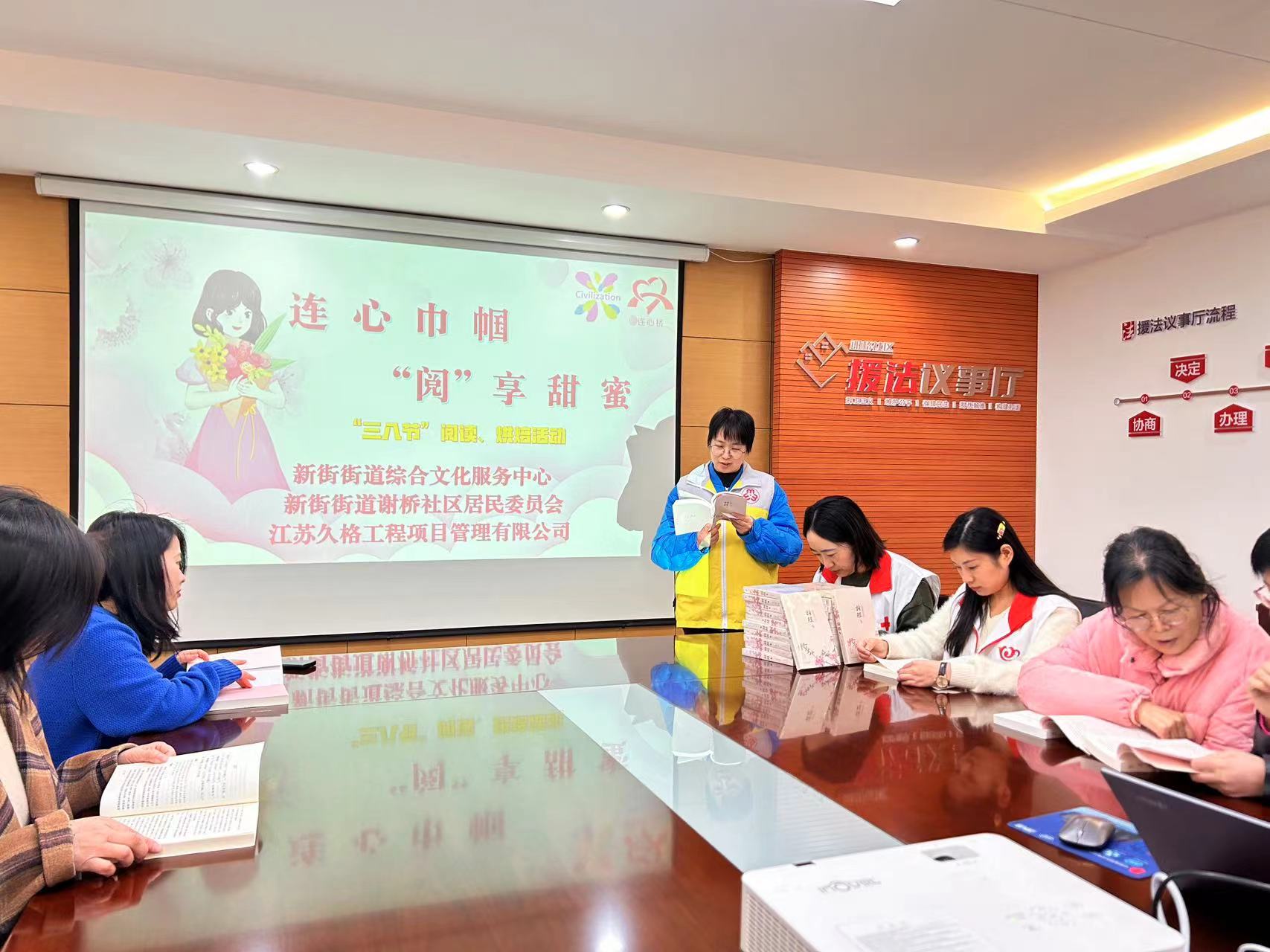 谢桥社区红十字开展了阅读、烘焙活动,志愿者代表与在场的女同胞分享了中国古典文学《诗经》中的《周南·桃夭》:“桃之夭夭,灼灼其华。之子于归,宜其室家。桃之夭夭,有蕡其实。之子于归,宜其家室。桃之夭夭,其叶蓁蓁。之子于归,宜其家人。”此篇用优美精练的语言叙写了女子出嫁的情景和作者的美好祝愿,揭示了新娘与家人和睦相处的美好品德,也写出了她的美好品德给新建的家庭注入新鲜的血液,带来和谐欢乐的气氛。这是亘古不变的中华传统美德,家庭和睦、国泰民安是大家的憧憬。