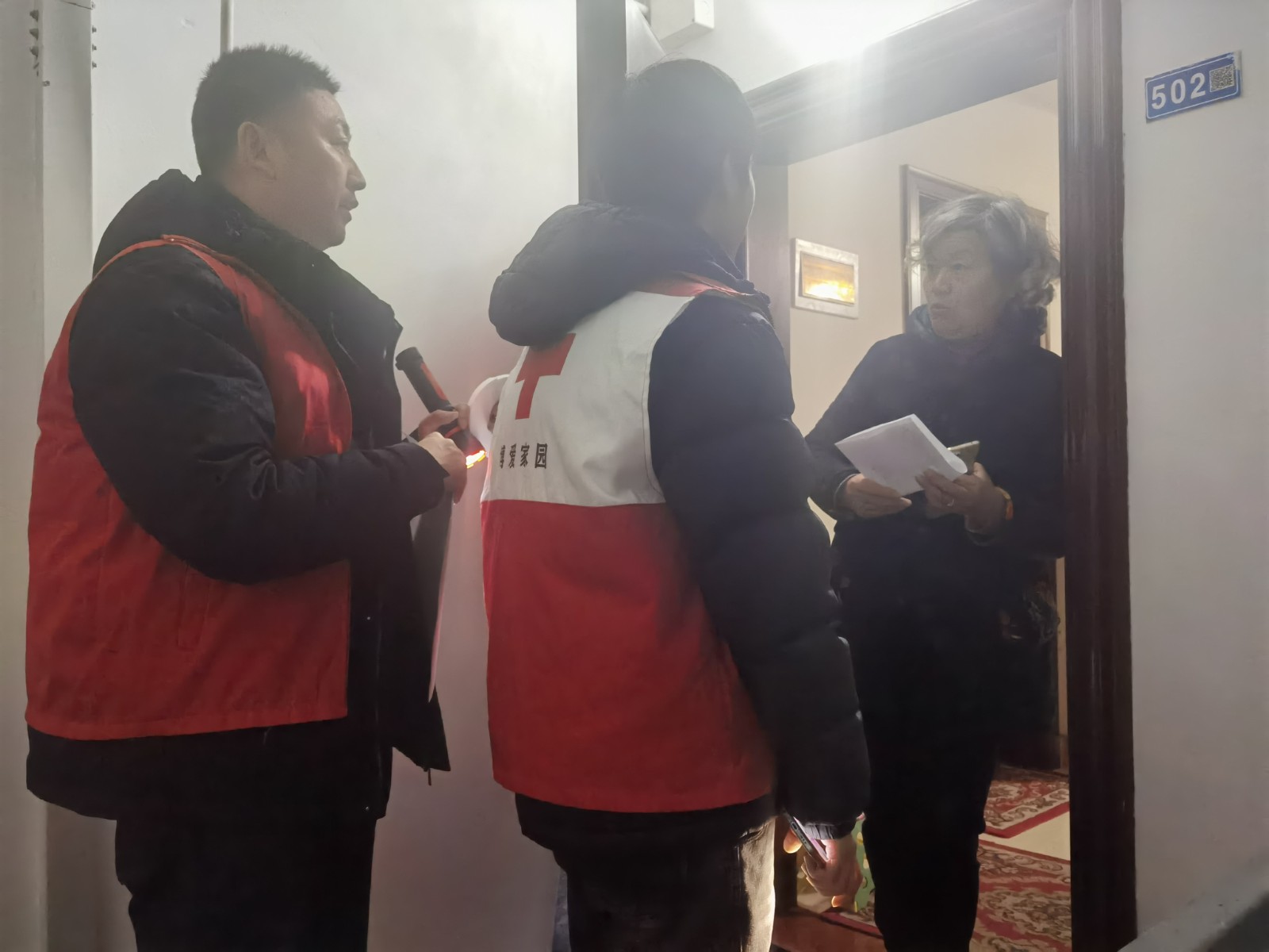 为切实做好安全工作,消除各类安全隐患,进一步筑牢安全防线,红十字会志愿者对辖区内企业、餐饮、小区、群租房等场所开展了消防安全检查。重点排查检查三方面:一是治安安全隐患,是否按规定登记人员信息等。二是消防安全隐患,检查出租房内电线和电器设备是否存在乱接乱拉现象、是否配备灭火器、灭火器是否过期等问题。三是房屋安全隐患,检查出租房、厂房是否存在分隔搭建、结构安全等问题。并在向群众讲解了如何扑救初期火灾、如何预防火灾、遇到紧急情况时应该如何处理、逃生等与日常生活密切相关的消防知识。