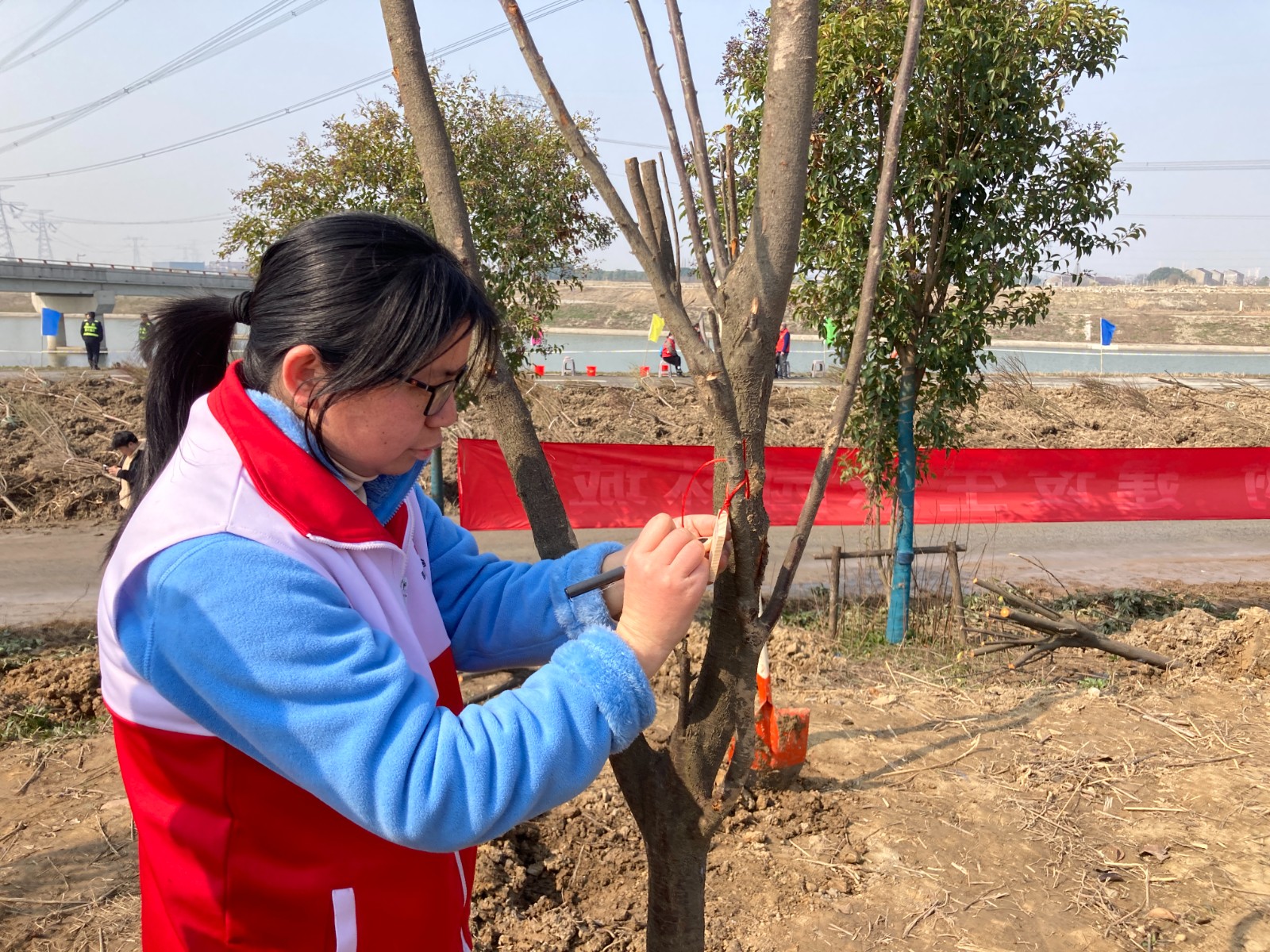 到达目的地后,大家态度积极、热情高涨,兴致勃勃地投入到植树活动中。在植树现场,大家有的扶苗,有的培土,各个环节衔接有序,配合默契,真正是劲往一处使,汗往一处流,充分发扬了团结、互助、友爱的精神。现场志愿者们还手把手指导小朋友植树方法,引导孩子树立“植树护林,从小做起”的理念。经过一上午的挥汗奋战,三棵樱花树,三棵桃树,三棵紫叶李树整齐地栽到了种植地,在三月的阳光中奏响绿色的希望,圆满完成了这次植树任务,为西直湖港增添了一片生机勃勃的绿色。最后大家纷纷在自己栽种的绿植上签名留言,送上美好祝福!