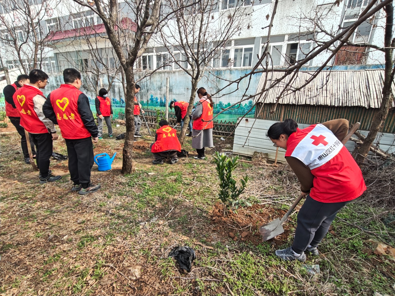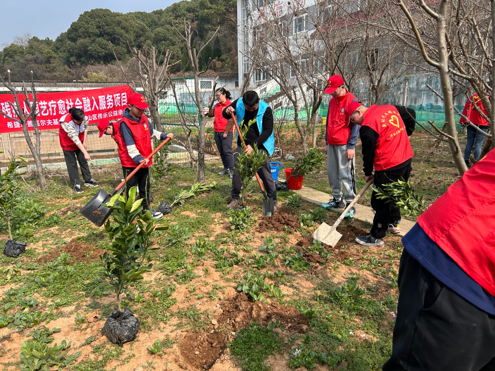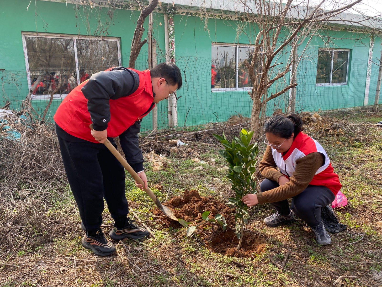 活动开始,馨禾残疾人之家管理员带领大家参观了辅助性就业室、康复室、豆芽工坊、耘梦田园,详细介绍机构的功能定位、运营管理的经验和特色项目、具体的服务内容,后期将围绕馨禾残疾人之家的地理和人员优势,找准助残工作的共同点、开展活动的切入点,不断拓展共建的广度和深度,让大家对残疾人之家有进一步的了解和认识。随后,由红十字志愿者带领着大家,五人一组,领取了橘子树苗、铁锹、水盆等工具,有的挖坑、有的扶苗、有的培土、有的浇水,大家配合得十分默契,现场一派热火朝天的景象,用劳动诠释着对大自然的热爱。经过两小时忙碌,象征着生命与希望的橘子树便挺直了腰杆,在汗水浇灌下与大家共同沐浴春风,大家看着自己的劳动成果,扬起了幸福满足的笑容,纷纷表示待那秋风起,橘子树茁壮成长、开花结果时,再来体验收获果实的喜悦。