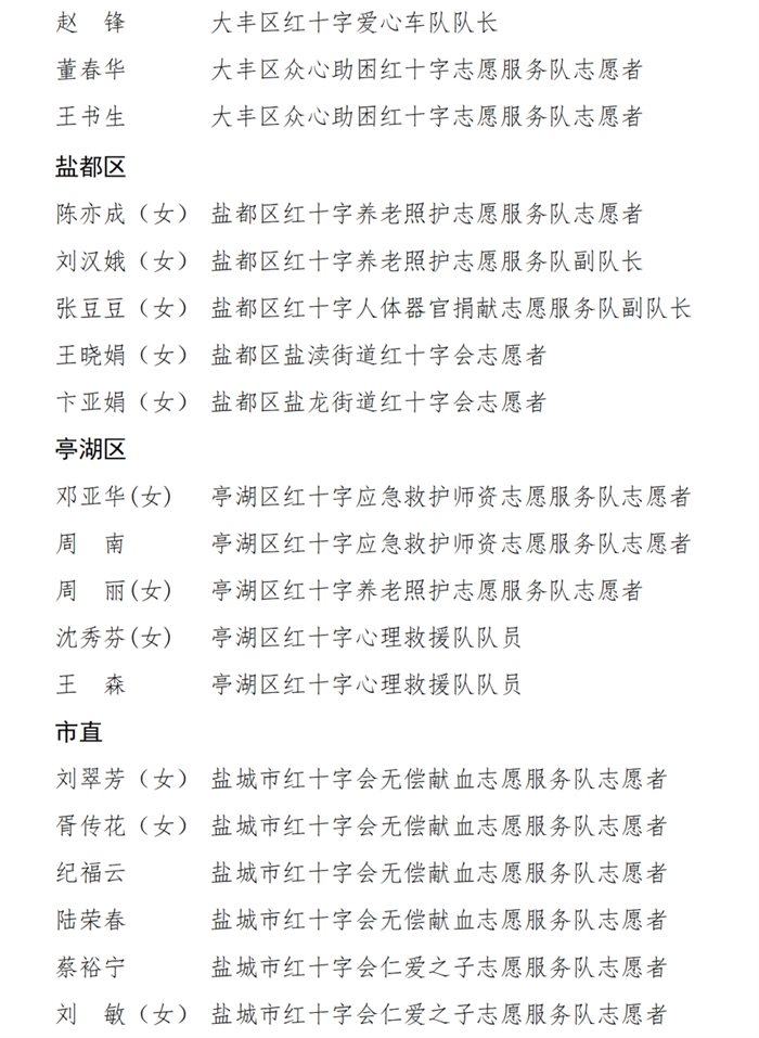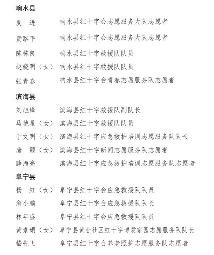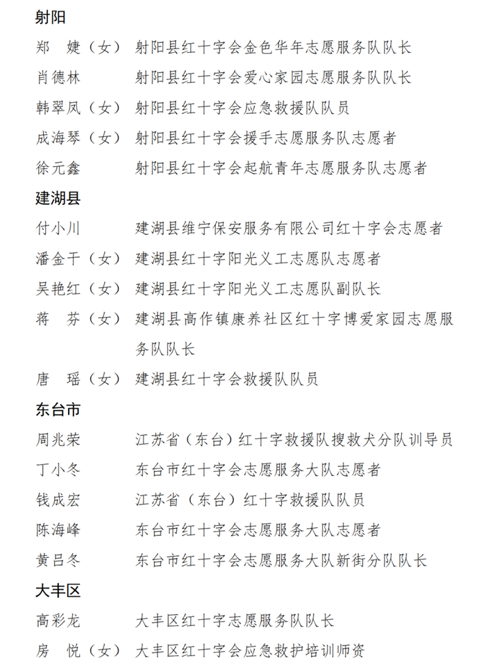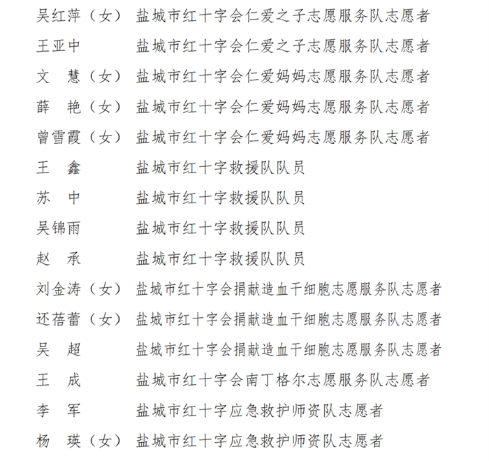 [盐城市]点赞:市红十字会公布优秀集体和优秀个人名单