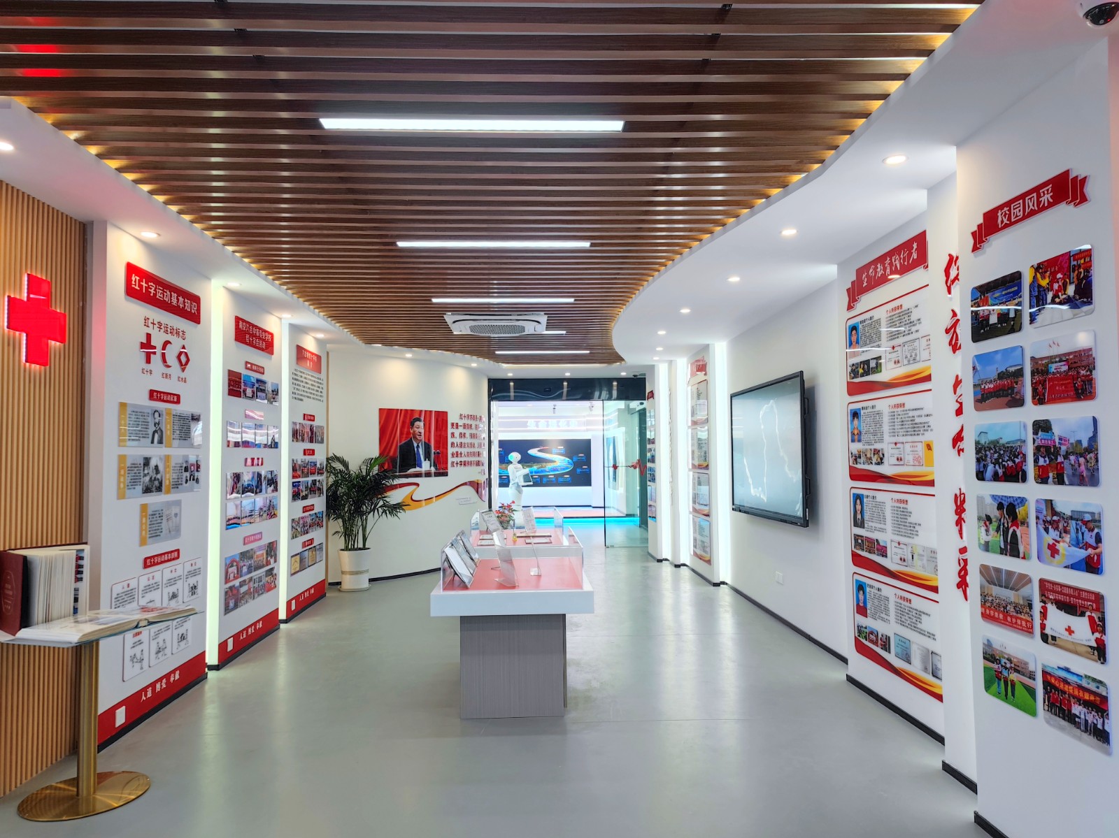 最后是生命绽放区,通过国际红十字的基本知识和发展历程展现,让公众了解红十字的国际地位,红十字运动是人类文明进步的象征,是人类社会发展的必然产物。团队荣誉墙和展示柜是结合学校历年来,在各种活动、大赛及校红十字工作中获得突出成就的优秀老师和学生代表,是全体师生学习的榜样。同时通过交互教学一体机多元化教学,让学生们认识的生命的意义,学习奉献精神、培养创新能力。