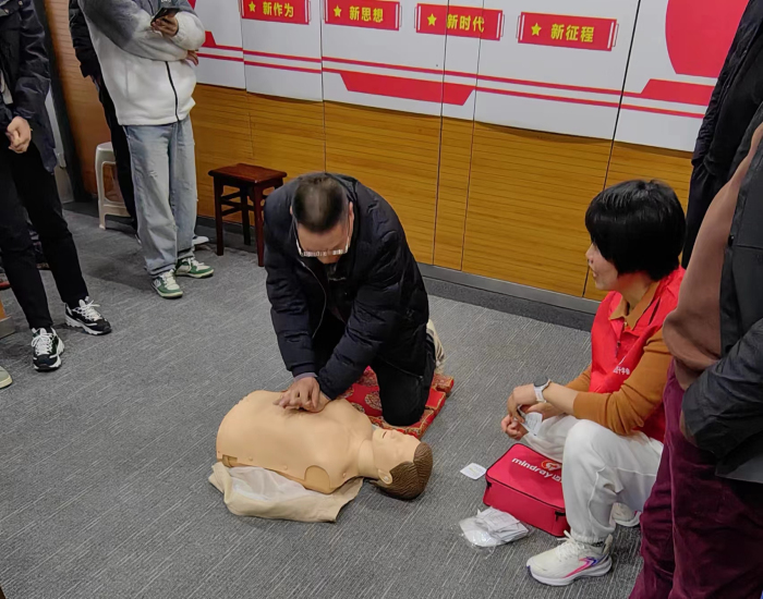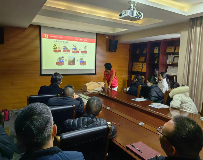 培训现场,老师通过视频引入、理论讲授与救护技能实操相结合的方式,向企业员工详细讲解了救护概念、心肺复苏操作等方面的救护知识。