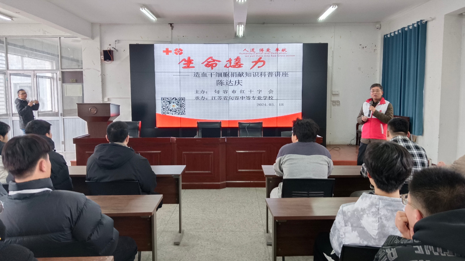 18日下午,生命接力讲师陈达庆来到江苏省句容中等专业学校,开展“生命接力——造血干细胞捐献知识”科普讲座,该校机械专业近100名学生参加。