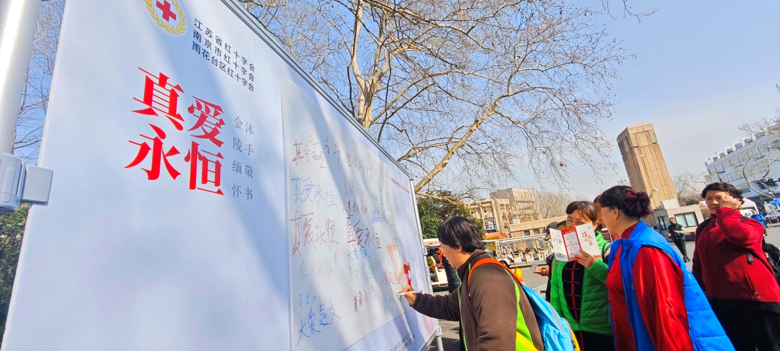 3月20日,南京市“真爱永恒——沐手敬书 金陵缅怀”主题宣传活动雨花台站分别在雨花台风景名胜区(雨花台烈士陵园)和春江社区博爱家园举行。活动融入应急救护培训和义诊服务。
