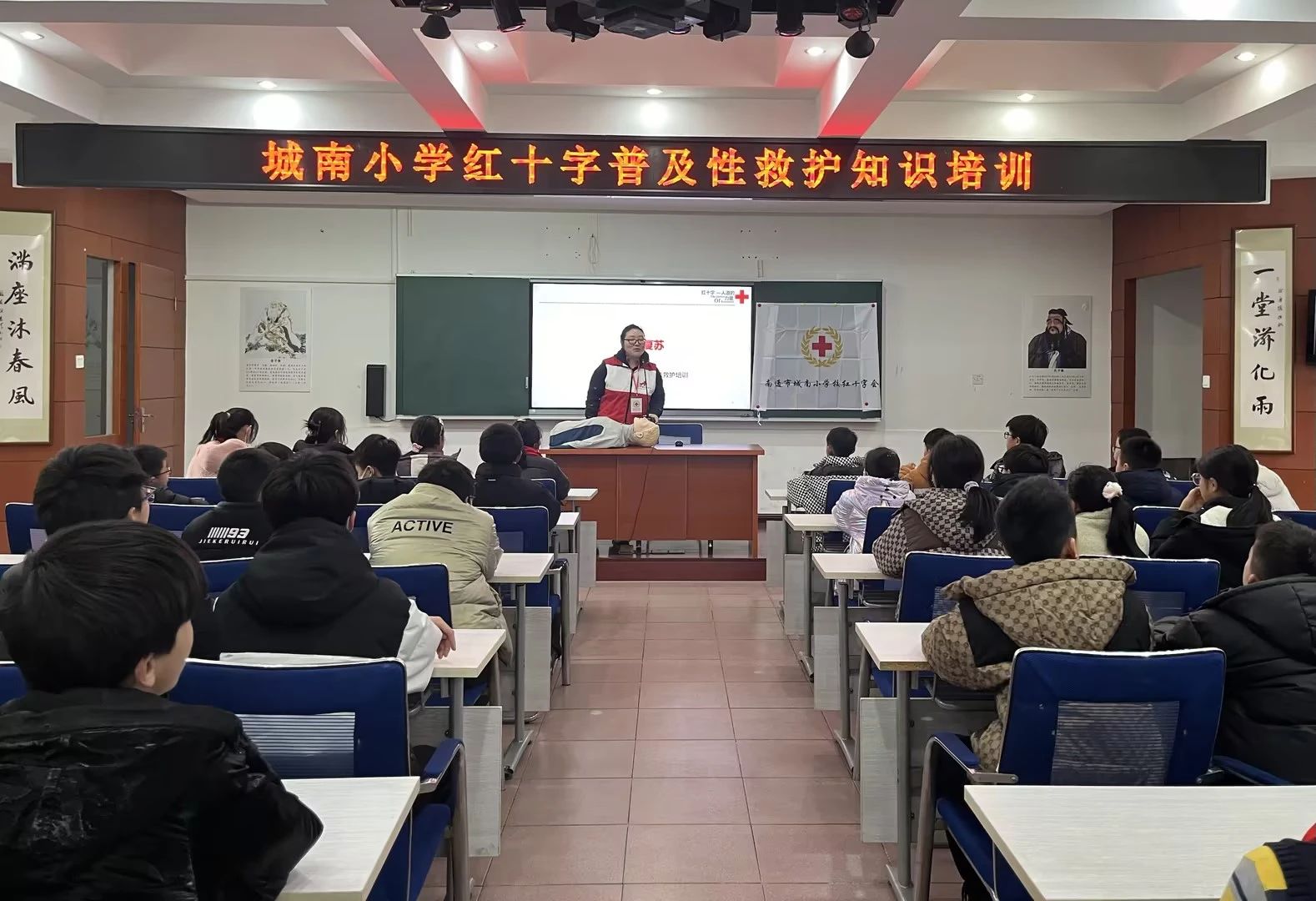 为进一步普及应急救护知识,提高学生应对突发事件及意外伤害的应急救护和自救互救能力,3月18日下午,城南小学邀请到了崇川区红十字会的专业急救老师马老师对六年级学生开展了一场形式多样、内容丰富的应急救护知识和技能的培训。