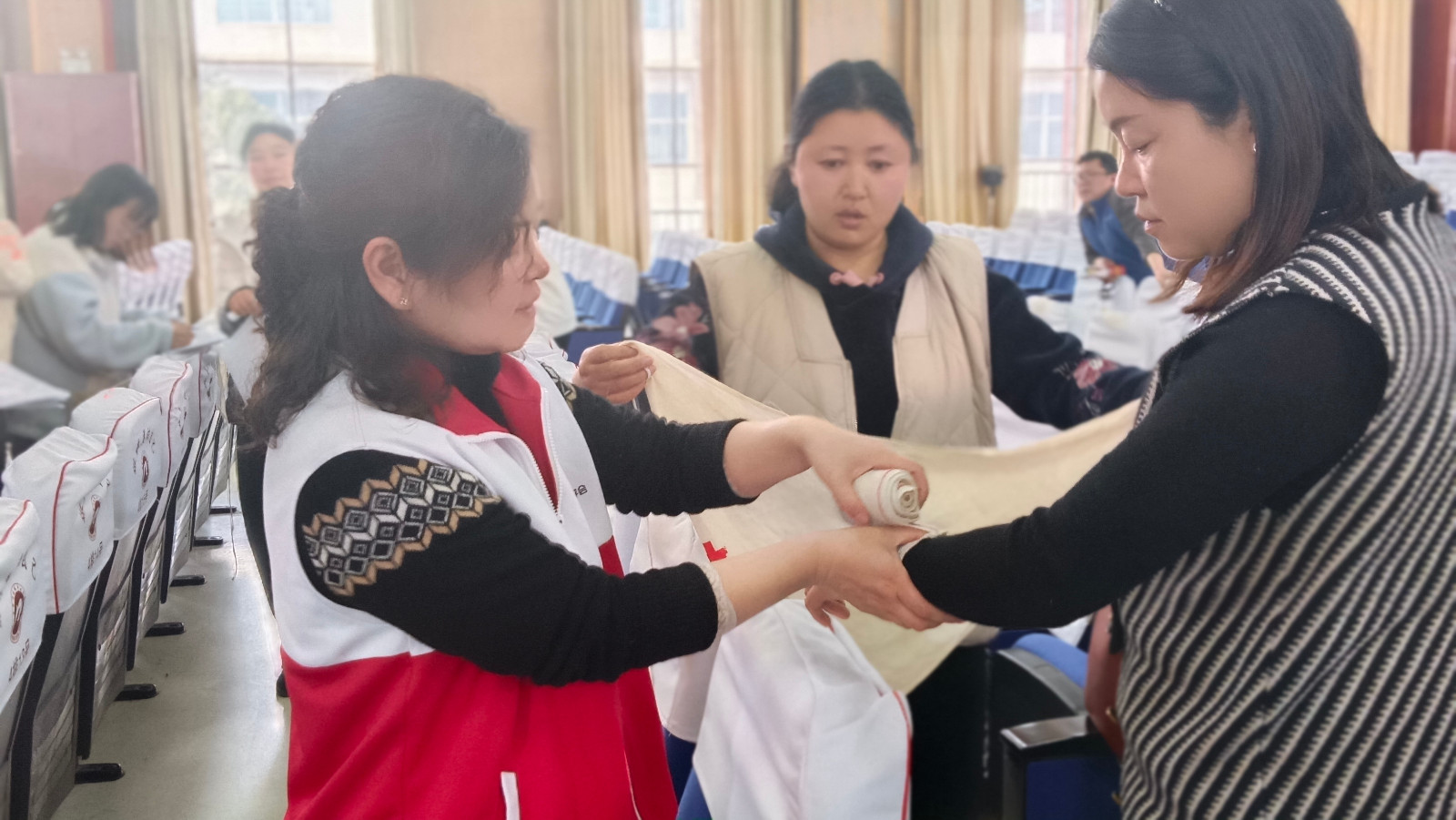 孩子鼻子出血了,该怎么止血?异物卡在喉咙了自样救命?当身边的同事或家人突然昏倒没有了呼吸和心跳,又该怎么办?……22日,市红十字会讲师团成员一行四人来到边城中心小学开展初级救护员培训活动,边城镇部分教职工和社区居民70余人参加。