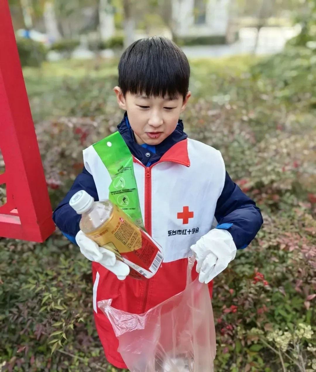 红十字青少年拿着火钳、铲子、笤帚对通榆河风光带道路、公共场所等地进行地毯式清洁打扫,他们手拿垃圾袋、清理工具,发扬不怕脏、不怕累的精神,互相配合,认真清理拾捡沿边垃圾,不管是藏在草里的还是压在石头下的,甚至是淹没在湖水边泥沙中的污染物,统统都不放过,忙碌的身影也成了岸边一道亮丽的风景线。他们化身环保“护卫队”,来回穿梭在河滩上捡拾垃圾,以实际行动倡导“绿色发展理念”,在学习和实践中凝聚起团结奋斗的正能量。经过两个小时的努力,岸边变得更加整洁、干净和美丽。