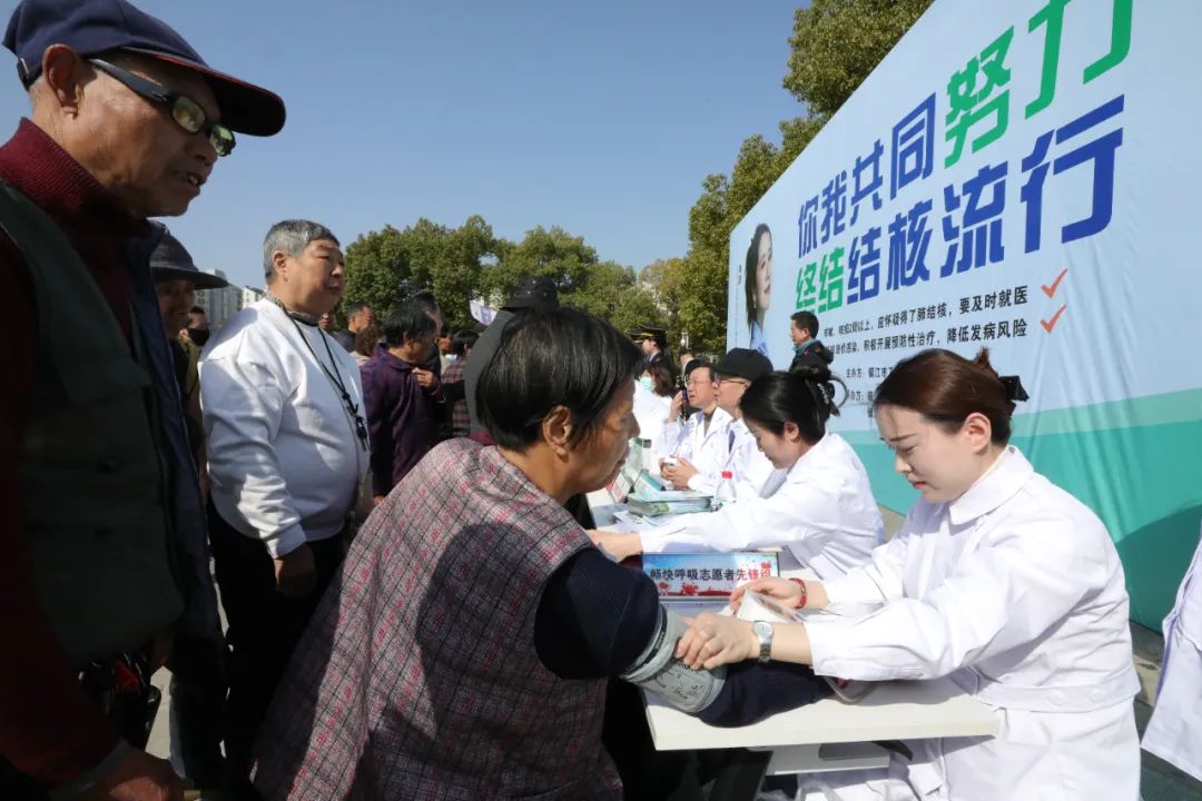 2024年3月24日是第29个“世界防治结核病日”,3月22日上午,市红十字团体会员单位、第三人民医院组织医务人员在市经开区万欣广场开展科普宣传和义诊活动,全国劳模、肺科主任、主任医师潘洪秋,主任医师陈永忠等近十名专业医护人员为广大市民提供了免费健康咨询、检查和结核病防治知识科普宣传,帮助市民提升结核病早检查、早诊断、早治疗的意识。