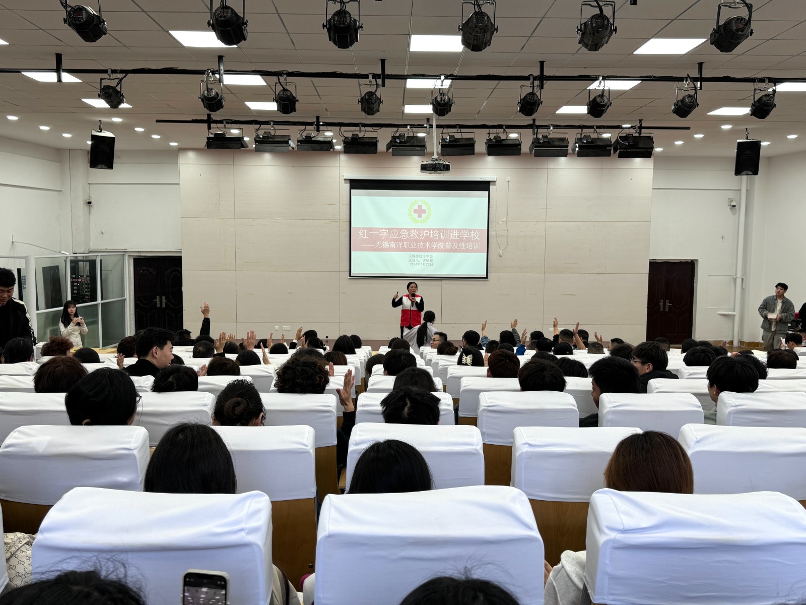 2024年3月22日,无锡市红十字会受邀在南洋职业技术学院开展了一场精彩的应急救护普及培训,250余名学生和教师参加了现场活动。