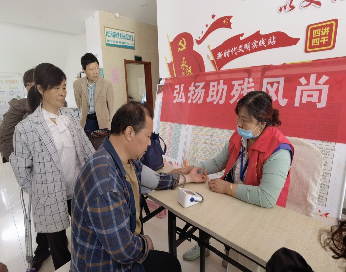 送服务,志愿服务在行动。开展了免费理发及义诊活动,志愿者们为残疾人提供专业贴心的服务,极大地方便了一些行动不便的残疾人,为他们详细检查近期身体的情况,提供康复咨询,让他们掌握一定的康复知识,增强自身参与社会的能力,更好地自强自信自立,积极融入社会。