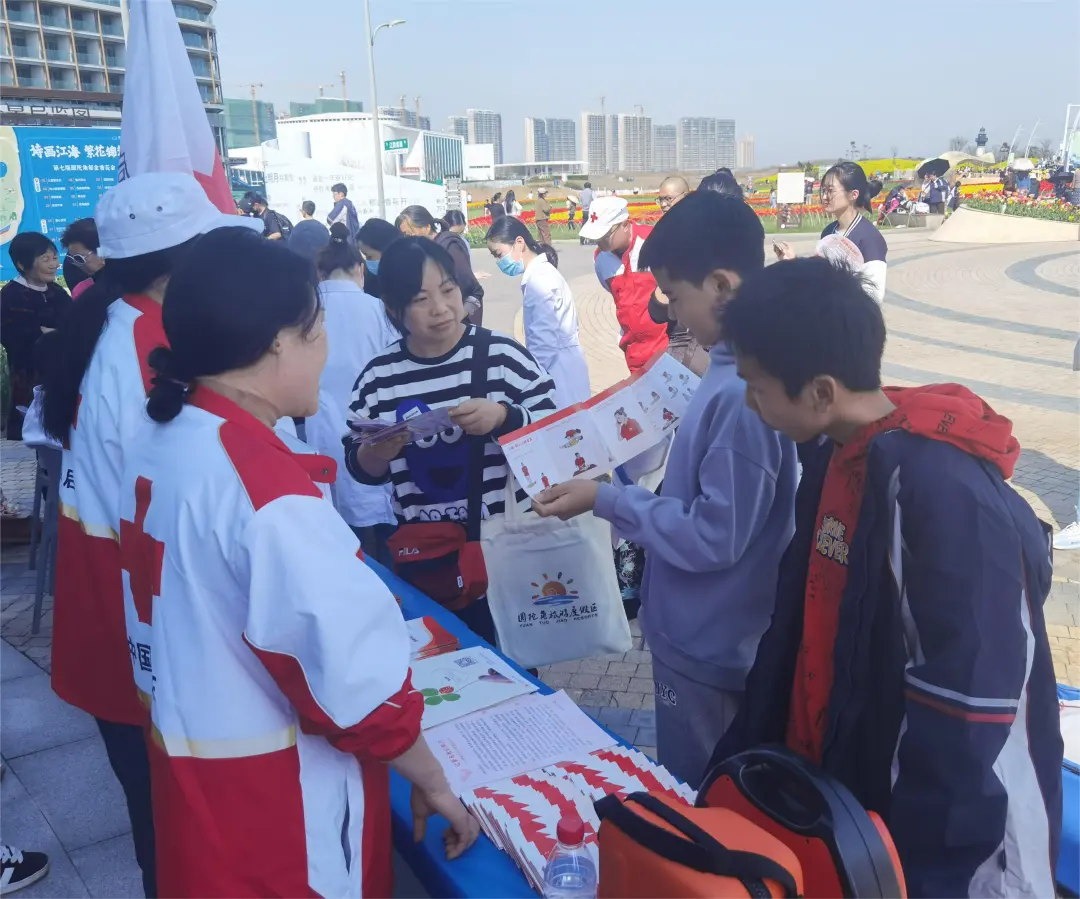面朝大海,春暖花开。近期,圆陀角旅游度假区的郁金香花海盛大开放,一时间,游客纷至沓来、赏花踏青。为服务保障游客安心出行, 3月29日,市红十字会机关党支部、红十字赈济救援队党员及部分志愿者来到景区,开展“三救三献”知识宣传、救护技能实操演示,协力做好应急保障服务。