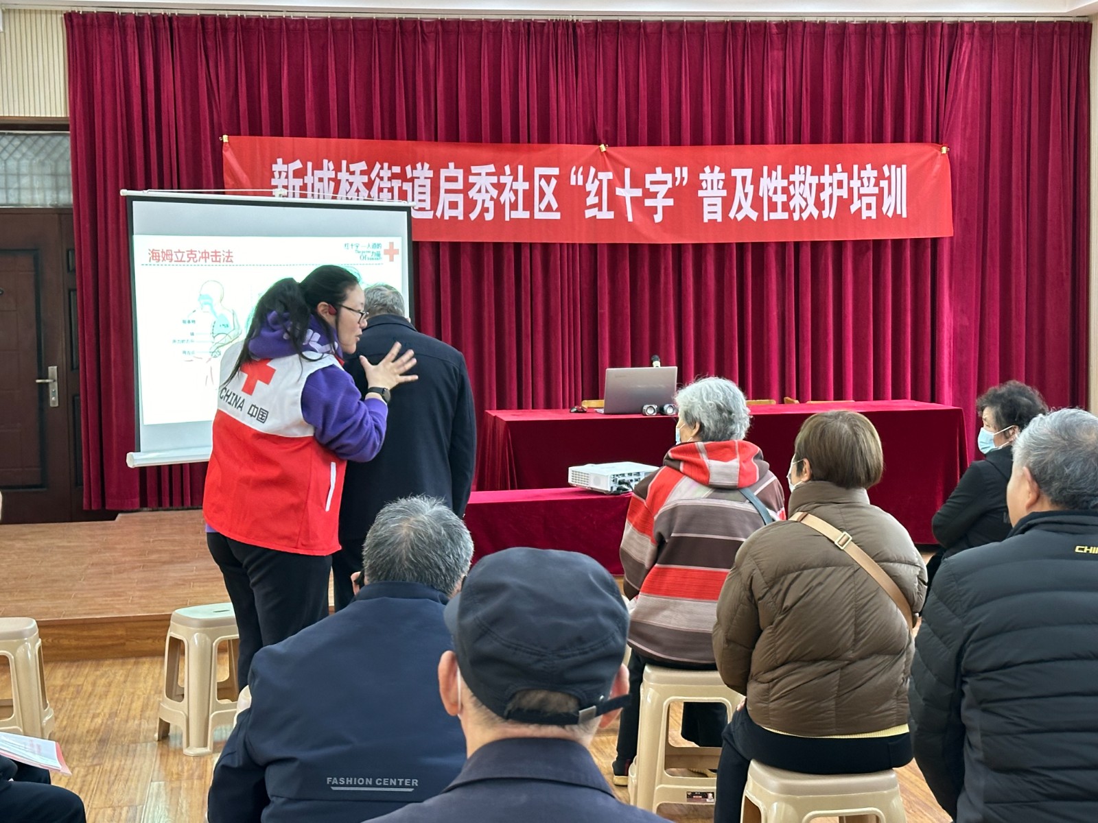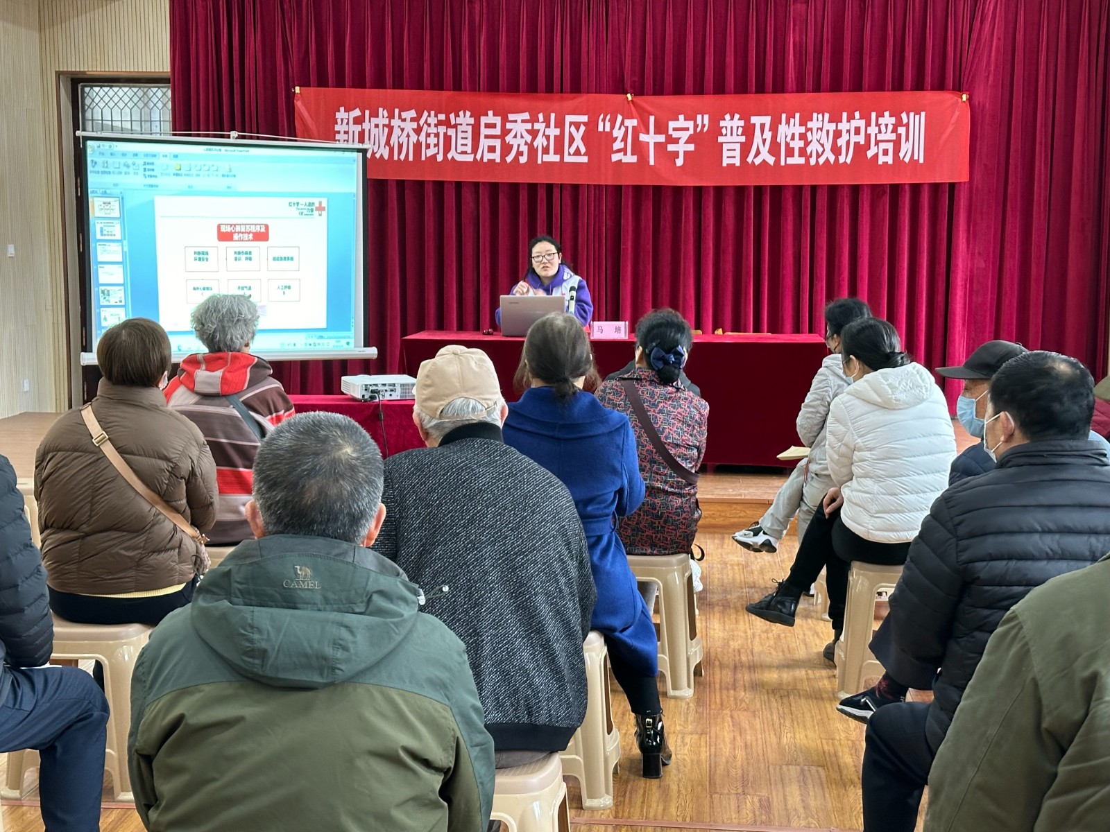 为普及应急救护知识,增强居民的自我保护意识及应急救护能力,4月1日,新城桥街道启秀社区开展红十字普及性救护培训进基层活动。