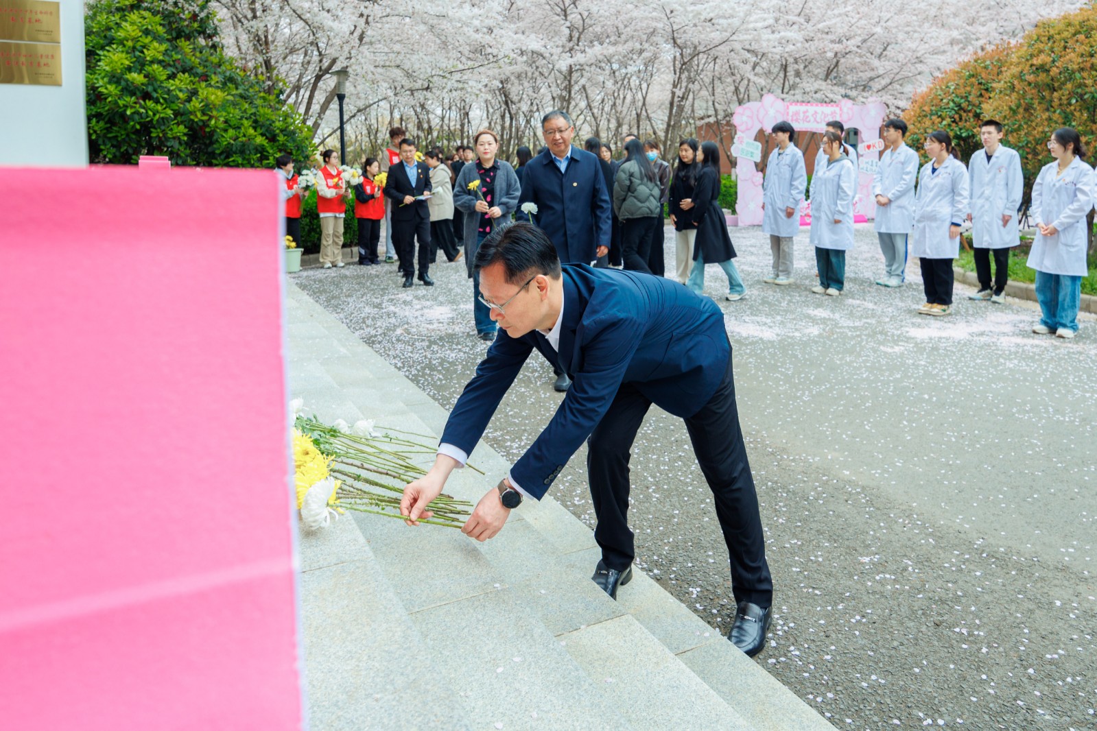 落英缤纷,清明思人。4月2日上午,南京医科大学康达学院2024年遗体器官捐献缅怀活动暨“献身医道尽仁心,永葆初心担使命”实景主题团课在生命科学馆前举行。连云港市红十字会党组成员、秘书长徐育军、事业发展部三级主任科员倪宁,团市委学少部部长李娜,连云团区委副书记巩雪,康达学院领导王兴东、王磊,团委负责人,学部团总支书记、部分学生代表及连云区云山小学少先队员代表参加了本次活动。