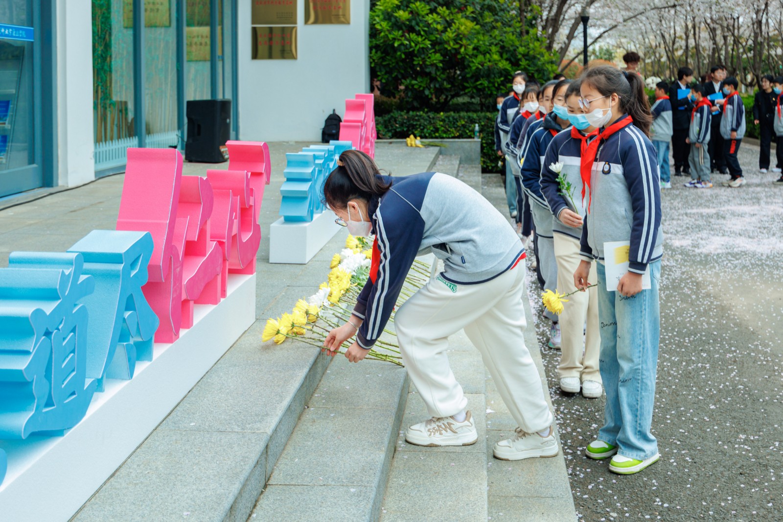 全体师生依次向无语良师献花,缅怀活动结束后,云山小学的少先队员们还参观了学院生命科学馆。