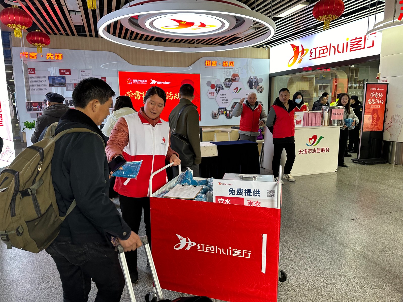 正值多雨季节,火车站客流量大,站北社区红十字志愿者们来到无锡火车站地下广场红色会客厅,为过往旅客进行道路指引、提供雨衣等志愿服务。大家积极行动、倾情奉献,在奉献中感受快乐,实现自我价值,展现红十字志愿者的风采。